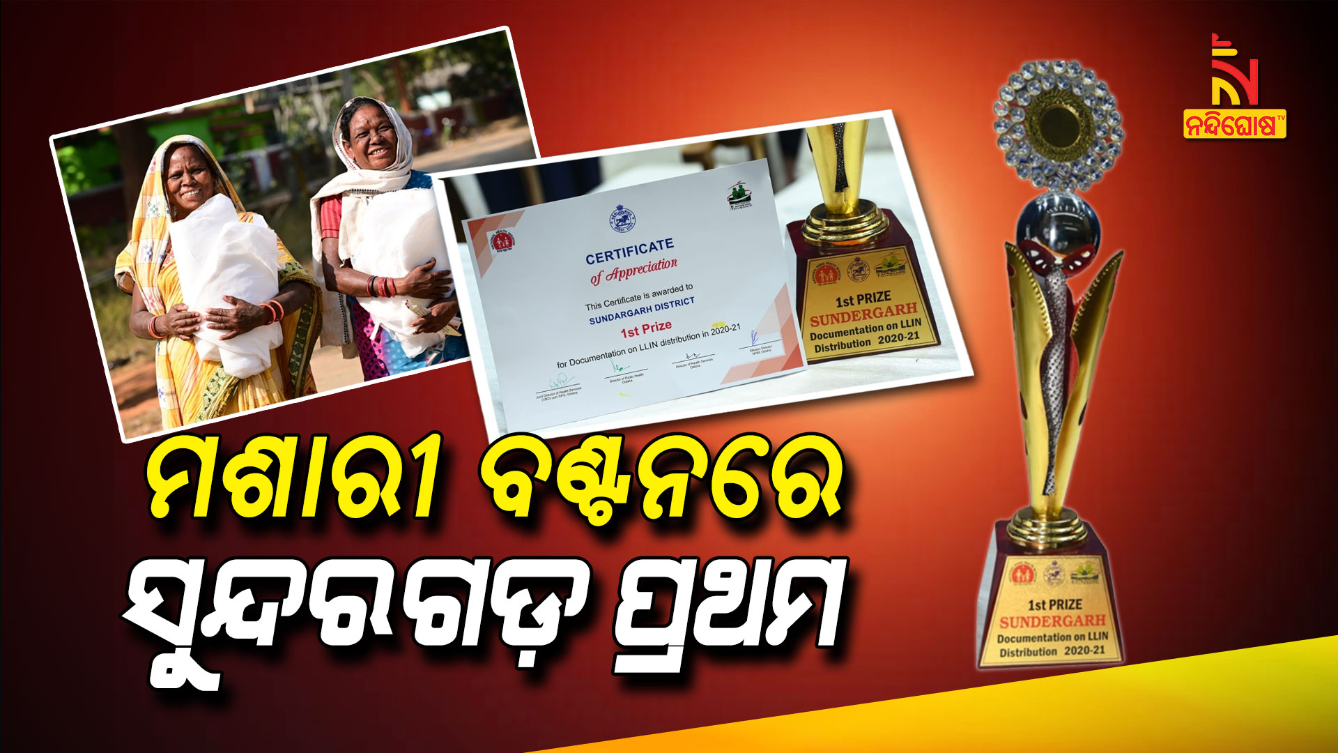 ରାଉରକେଲା: ମ୍ୟାଲେରିଆ ନିୟନ୍ତ୍ରଣ ପାଇଁ ଦୀର୍ଘସ୍ଥାୟୀ କୀଟନାଶକ ଉପଚାରିତ ମଶାରୀ ବା ଏଲ୍ଏଲ୍ଆଇଏନ୍ ବଣ୍ଟନ କାର୍ଯ୍ୟକ୍ରମର ସଫଳ ଡକ୍ୟୁମେଣ୍ଟେସନ ଲାଗି ସୁନ୍ଦରଗଡ଼ ଜିଲ୍ଲା ରାଜ୍ୟସ୍ତରରେ ପ୍ରଥମ ପୁରସ୍କାର ଲାଭ କରିଛି। ରାଜ୍ୟ ସ୍ୱାସ୍ଥ୍ୟ ଓ ପରିବାର କଲ୍ୟାଣ ବିଭାଗ ପକ୍ଷରୁ ବିଶ୍ୱ ମ୍ୟାଲେରିଆ ଦିବସ ପାଳନ ଅବସରରେ ସୁନ୍ଦରଗଡ଼କୁ ଏହି ପୁରସ୍କାର ପ୍ରଦାନ କରାଯାଇଛି। ଏହି କ୍ରମରେ ବଲାଙ୍ଗୀର ଜିଲ୍ଲା ଦ୍ୱିତୀୟ ଏବଂ କେନ୍ଦୁଝର ଜିଲ୍ଲା ତୃତୀୟ ହୋଇଛି।