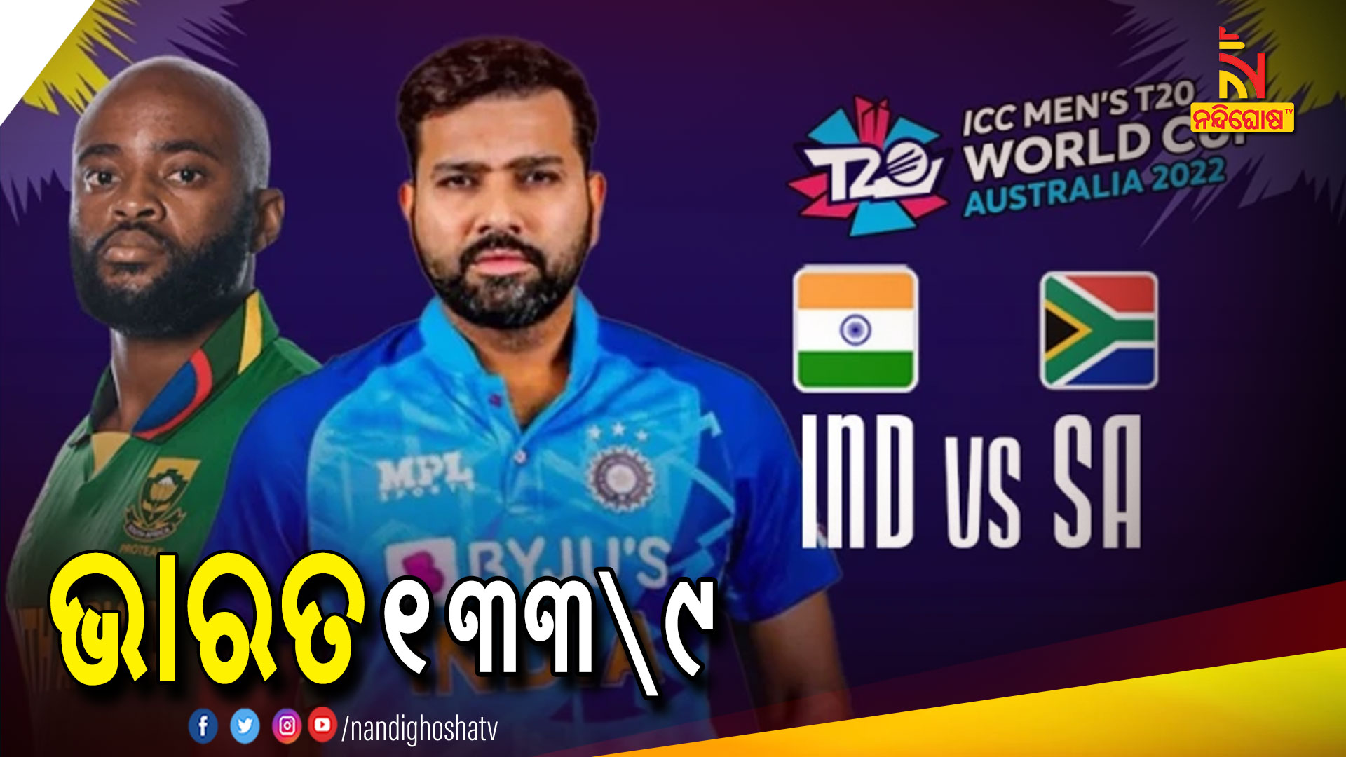 ପର୍ଥ: ଟି୨୦ ବିଶ୍ୱ କପରେ ଭାରତ ଦକ୍ଷିଣ ଆଫ୍ରିକା ମଧ୍ୟରେ କଡା ଟକ୍କର । ଭାରତ ପ୍ରଥମେ ବ୍ୟାଟିଂ କରି ଦକ୍ଷିଣ ଆଫ୍ରିକାକୁ ୧୩୪ ରନର ଟାର୍ଗେଟ ଦେଇଛି । ଟିମ୍ ଇଣ୍ଡିଆ ନିର୍ଦ୍ଧାରିତ ୨୦ ଓଭରରେ ୯ ୱିକେଟ ହରାଇ ୧୩୩ ରନ କରିଛି । ସୂର୍ଯ୍ୟକୁମାର ଯାଦବ ଲଢ଼ୁଆ ଅର୍ଦ୍ଧଶତକ ପାଳି ଭାରତକୁ ଆଗକୁ ନେବାରେ ସହାୟକ ହୋଇଛି ।