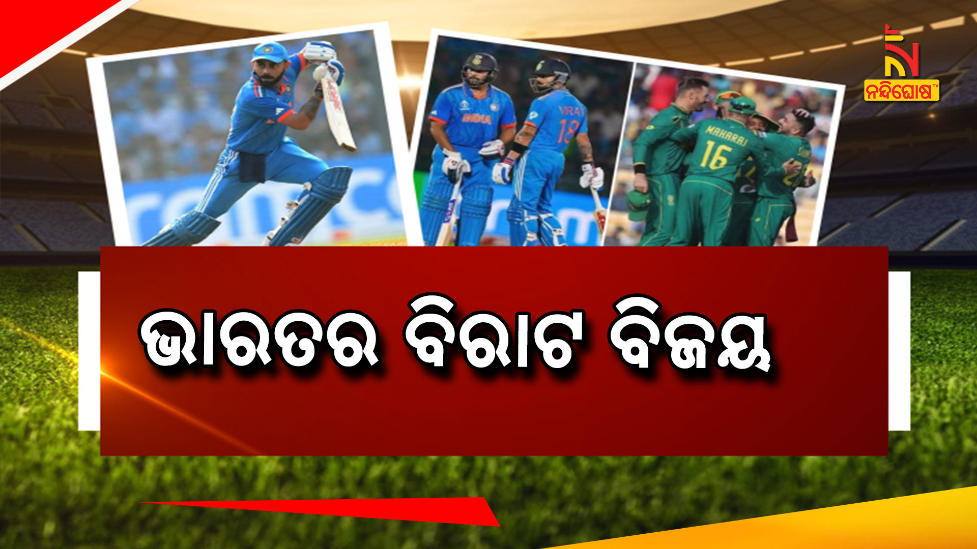 ଭାରତର ବିରାଟ ବିଜୟ । ସାଉଥ ଆଫ୍ରିକାକୁ ୨୪୩ ରନରେ ଅଲଆଉଟ କରିଛି ଭାରତ । କୋଲକାତାର ଇଡେନ ଗାଡେନ୍ସରେ ଚାଲିଥିବା ବିଶ୍ବକପର ଏକ ମ୍ୟାଚରେ ଦକ୍ଷିଣ ଆଫ୍ରିକାକୁ ୨୪୩ ରନରେ ପରାସ୍ତ କରିଛି ଭାରତ । ଏହା ସହିତ ଚଳିତ ବିଶ୍ବକପରେ ନିଜର ବିଜୟ ଧାରା ଜାରି ରଖିଛି ଟିମ୍ ଇଣ୍ଡିଆ ।ଦକ୍ଷିଣ ଆଫ୍ରିକା ଆଗରେ ୩୨୭ ରନର ଲକ୍ଷ୍ୟ ରଖିଥିଲା ଟିମ ଇଣ୍ଡିଆ । ନିଜର ଘାତକ ବୋଲିଂର ପ୍ରଦର୍ଶନ କରି ଭାରତୀୟ ବୋଲରମାନେ ଦକ୍ଷିଣ ଆଫ୍ରିକା ଟିମକୁ ଧୂଳି ଚଟାଇଥିଲେ । ଦକ୍ଷିଣ ଆଫ୍ରିକା ମାତ୍ର ୮୩ ରନରେ ଅଲଆଉଟ ହୋଇଯାଇଥିଲା । ଦଳପକ୍ଷରୁ କୌଣସି ବ୍ୟାଟ୍ସମ୍ୟାନ କ୍ରିଜରେ ତିଷ୍ଠିପାରିନଥିଲେ । ଦଳ ପକ୍ଷରୁ ମାର୍କୋ ଜାନସେନ ୧୪ ରନ ଓ ରାସି ଭାନ ଡର୍ ଦୁସେନ ୧୩ ରନ କରିଥିଲେ । ଭାରତ ପକ୍ଷରୁ ରବୀନ୍ଦ୍ର ଜାଦେଜା ୫ଟି ଓ୍ବିକେଟ ନେଇଥିବାବେଳେ ମହମ୍ମଦ ସମି ଓ କୂଳଦୀପ ଯାଦବ ୨ଟି ଲେଖାଏଁ ଓ୍ବିକେଟ ନେଇଥିଲେ ।