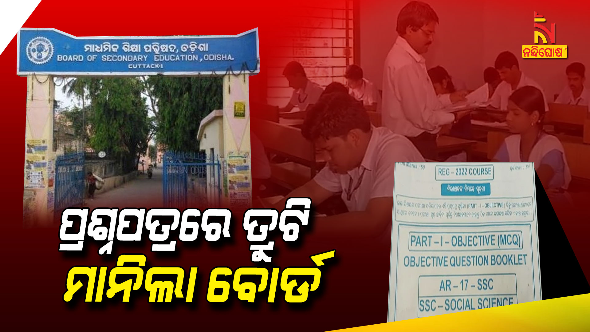 କଟକ: ମାଟ୍ରିକ ପରୀକ୍ଷା ପ୍ରଶ୍ନପତ୍ରରେ ତ୍ରୁଟିକୁ ସ୍ୱୀକାର କଲା ବୋର୍ଡ। ମୁଦ୍ରଣ ଜନିତ ତ୍ରୁଟି ହୋଇଥିବା କହିଲେ ବୋର୍ଡ ସଭାପତି। କିଛି ସେଣ୍ଟରରେ ଏହି ଭଳି ତ୍ରୁଟି ହୋଇଥିବା କହିଛି ବୋର୍ଡ। ଖାତା ଦେଖା ବେଳେ ସେସବୁକୁ ଧ୍ୟାନରେ ରଖାଯିବ । ଛାତ୍ରଛାତ୍ରୀ ଚିନ୍ତିତ ନହେବାକୁ ପରାମର୍ଶ ଦେଇଛନ୍ତି ବୋର୍ଡ ସଭାପତି । ଅଳ୍ପ ଛାତ୍ରଛାତ୍ରୀ ଏଭଳି ପ୍ରଶ୍ନପତ୍ର ପାଇଥିଲେ।