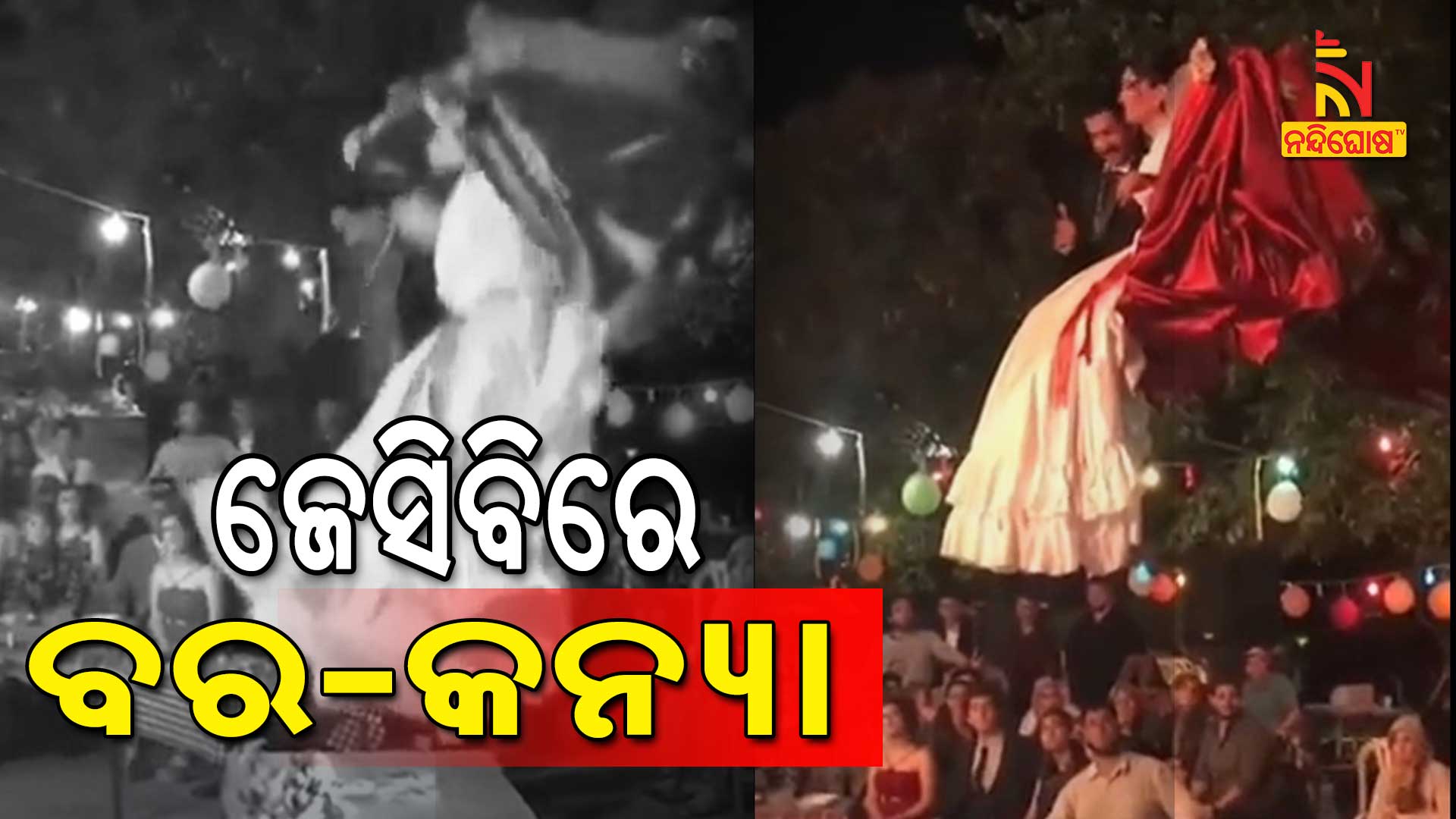 ବିବାହରେ ଆସିଥିବା ସମସ୍ତ ଅତିଥି ବର-କନ୍ୟାଙ୍କୁ ପ୍ରତିକ୍ଷା କରିଥିବା ବେଳେ ଉଭୟେ ଜେସିବିରେ ଆସିଥିଲେ । ବର କୋର୍ଟ, ପ୍ୟାଣ୍ଟ ପିନ୍ଧିଥିବା ବେଳେ କନ୍ୟା ଧଳା ରଙ୍ଗର ପୋଷାକ ପିନ୍ଧିଥିବା ଦେଖାଯାଉଛି । ଠିକ୍ ଏତିକିବେଳେ ଜେସିବିରୁ ଉଭୟ ଖସିପଡ଼ୁଥିବା ଦେଖାଯାଉଛି । ଯାହା ସୋସିଆଲ ମିଡିଆରେ ଭାଇରାଲ ହେବାରେ ଲାଗୁଛି । ଏଠାରେ ଉପସ୍ଥିତ ଥିବା ଅତିଥିଗଣ ଆଶ୍ଚର୍ଯ୍ୟ ହେଉଥିବା ବେଳେ ଟ୍ୱିଟରରେ ଭିଡିଓଟିକୁ ଥଟ୍ଟା କରୁଥିବାର ଦେଖାଯାଇଛି । ଭିଡିଓଟି କେଉଁ ସ୍ଥାନର ତାହା ଏଯାଏ ଜଣାପଡ଼ିନାହିଁ, ମାତ୍ର ଏହା ବାହାର ଦେଶର ବୋଲି ଭିଡିଓରୁ ଜଣାପଡ଼ୁଛି ।