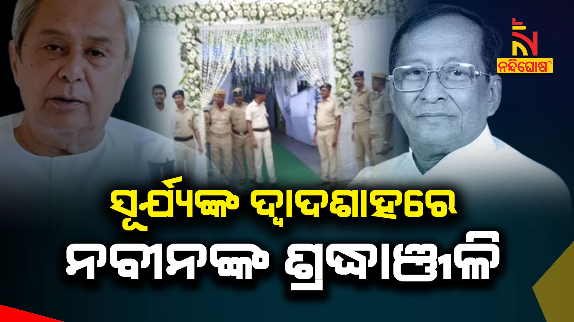 ଭୁବନେଶ୍ବର: ପୂର୍ବତନ ବାଚସ୍ପତି ସ୍ବର୍ଗତ ସୂର୍ଯ୍ୟନାରାୟଣ ପାତ୍ରଙ୍କର ଆଜି ଦ୍ବାଦଶାହ । ମୁଖ୍ୟମନ୍ତ୍ରୀ ନବୀନ ପଟ୍ଟନାୟକ ଦ୍ବାଦଶାହରେ ଯୋଗଦେଇ ସୂର୍ଯ୍ୟନାରାୟଣ ପାତ୍ରଙ୍କୁ ଶ୍ରଦ୍ଧାଞ୍ଜଳି ଅର୍ପଣ କରିଛନ୍ତି । ରାଜ୍ୟପାଳ ଗଣେଶୀ ଲାଲ ମଧ୍ୟ ସୂର୍ଯ୍ୟପାତ୍ରଙ୍କୁ ଶ୍ରଦ୍ଧାଞ୍ଜଳି ଦେଇଛନ୍ତି । ଏହି ଅବସରରେ ଶ୍ରଦ୍ଧାଞ୍ଜଳି ଅର୍ପଣ କରୁଛନ୍ତି ଅନ୍ୟ ରାଜନେତା । ବିଜେଡି ସାଙ୍ଗଠନିକ ସମ୍ପାଦକ ପ୍ରଣବ ପ୍ରକାଶ ଦାସଙ୍କ ଠାରୁ ନେଇ ଅନେକ ନେତା ପହଞ୍ଚି ଶ୍ରଦ୍ଧାଞ୍ଜଳି ଅର୍ପଣ କରିଛନ୍ତି । ସେହିପରି ସୁଶାନ୍ତ ରାଉତ, ନୃସିଂହ ସାହୁ, ସୁର ରାଉତରାୟ ପ୍ରମୁଖ ଭୁବନେଶ୍ବର ବାସଭବନରେ ପହଞ୍ଚି ସୂର୍ଯ୍ୟପାତ୍ରଙ୍କୁ ଶ୍ରଦ୍ଧାଞ୍ଜଳି ଅର୍ପଣ କରିଛନ୍ତି ।