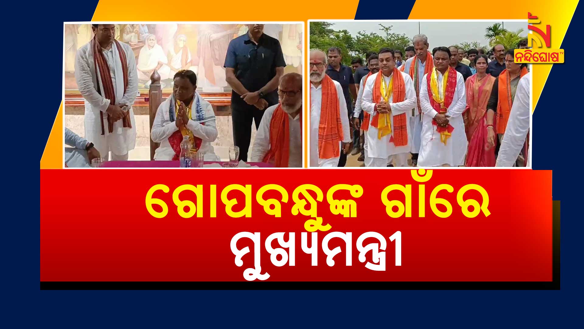 ପୁରୀ: ଉତ୍କଳମଣି ପଣ୍ଡିତ ଗୋପବନ୍ଧୁ ଦାସଙ୍କ ଗାଁ ବୁଲିଲେ ମୁଖ୍ଯମନ୍ତ୍ରୀ। ସୁଆଣ୍ଡୋରେ ମୁଖ୍ୟମନ୍ତ୍ରୀ ମୋହନ ମାଝୀ। ଆଜି ସକାଳୁ ମୁଖ୍ୟମନ୍ତ୍ରୀ ଅନ୍ୟ ଦୁଇ ଉପମୁଖ୍ୟମନ୍ତ୍ରୀଙ୍କ ସହ ପିପିଲି ଓ ସତ୍ୟବାଦୀର ବିଧାୟକ ଏବଂ ବାଲେଶ୍ବର, ପୁରୀର ସାଂସଦ ସୁଆଣ୍ଡୋରେ ପହଞ୍ଚିଥିଲେ। ପ୍ରଥମେ ଉତ୍କଳମଣୀ ଗୋପବନ୍ଧୁ ଦାସଙ୍କ ଷଠିଘର ପରିଦର୍ଶନ କରି ସେଠାରେ ଶ୍ରଦ୍ଧାସୁମନ ଅର୍ପଣ କରିଥିଲେ । ଏହାପରେ ଗୋପବନ୍ଧୁଙ୍କ ପ୍ରତିମୂର୍ତ୍ତୀରେ ମାଲ୍ୟାର୍ପଣ କରି ଶ୍ରଦ୍ଧାଞ୍ଜଳି ପ୍ରଦାନ କରିଥିଲେ ।