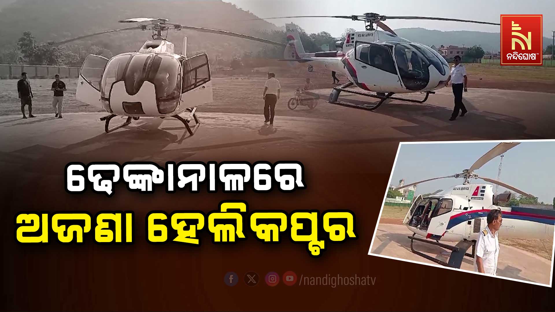 ଢେଙ୍କାନାଳ: ଢେଙ୍କାନାଳ ମହିଷାପାଟ ପଲ୍ଲିଶ୍ରୀ ପଡ଼ିଆରେ ଜରୁରୀ ଅବତରଣ କଲା ଏକ ଘରୋଇ ହେଲିକେପ୍ଟର। ତେବେ ହେଲିକପ୍ଟରଟି ଆସିବା ନେଇ ପୋଲିସ କି ପ୍ରଶାସନ ନିକଟରେ କୌଣସି ସୂଚନା ନଥିଲା । ହେଲିକପ୍ଟରଟି ACE AIR ସର୍ଭିସର ବୋଲି ଜଣାପଡ଼ିଛି। ହେଲିକପ୍ଟରଟିରେ ୫ ଜଣ ଆସିଥିବାବେଳେ ଅବତରଣ ପରେ ଦୁଇ ଜଣ ବ୍ୟକ୍ତି ଓହ୍ଲାଇ ଏକ ଗାଡ଼ିରେ କେଉଁଆଡ଼େ ଯାଇଥିବା ସୂଚନା ମିଳିଛି।