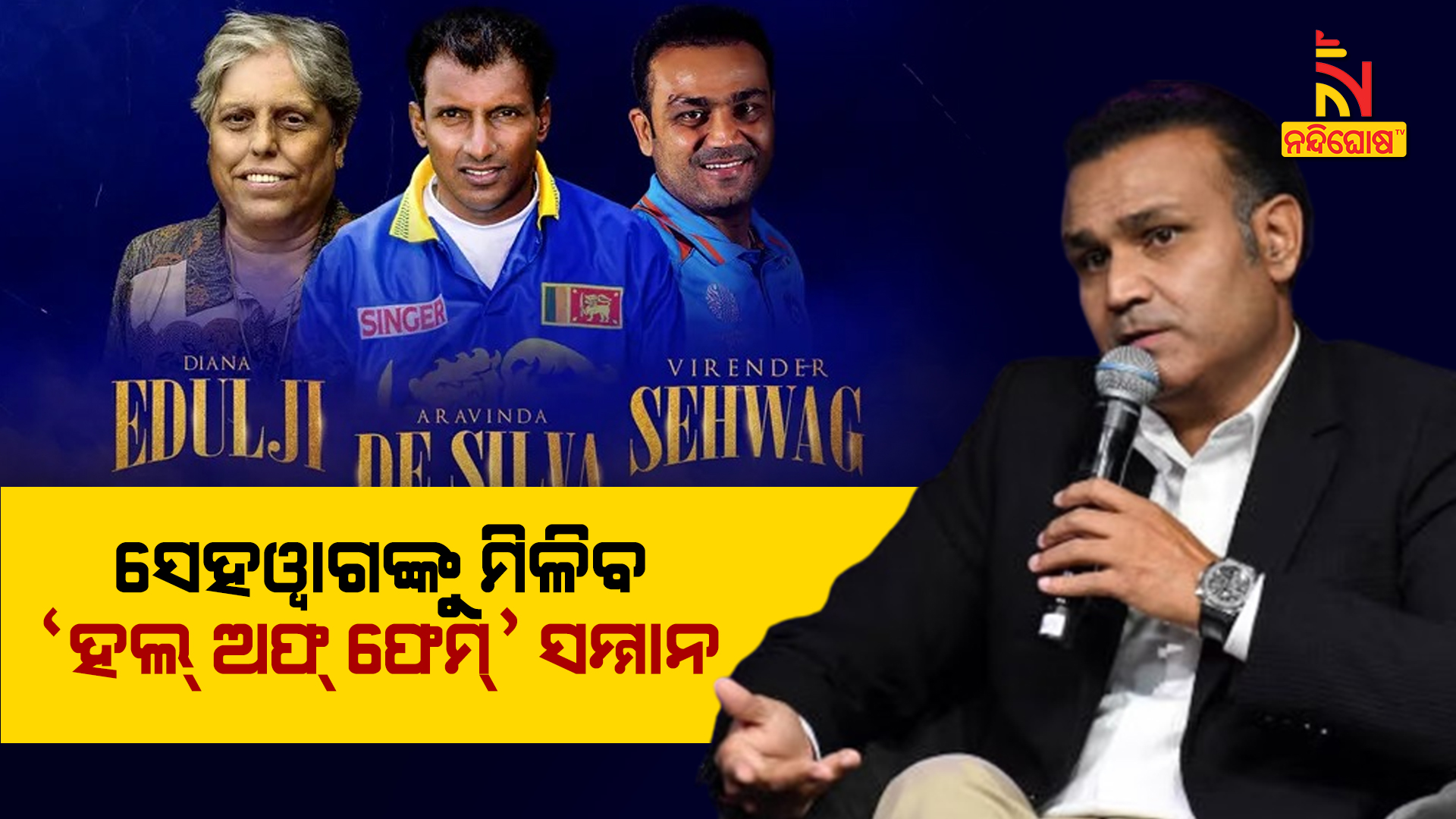 ଆଇସିସି ପକ୍ଷରୁ ସେହଓ୍ୱାଗଙ୍କୁ ‘ହଲ୍ ଅଫ୍ ଫେମ୍’ରେ ସାମିଲ କରାଯାଇଛି । ସେହଓ୍ବାଗଙ୍କ ଛଡା ଭାରତୀୟ ମହିଳା ଟମର ପୂର୍ବ ଖେଳାଳି ଡାଏନା ଇଦୁଲଜି ଏବଂ ଶ୍ରୀଲଙ୍କାର କିମ୍ୱଦନ୍ତୀ କ୍ରିକେଟର୍ ଅରବିନ୍ଦ ଡି’ସିଲ୍ଭା ମଧ୍ୟ ହଲ୍ ଅଫ ଫେମରେ ସ୍ଥାନ ପାଇଛନ୍ତି । ଏହା ସହିତ ହଲ୍ ଅଫ ଫ୍ରେମରେ ଅନ୍ତର୍ଭୁକ୍ତ ମୋଟ ଖେଳାଳିଙ୍କ ସଂଖ୍ୟା ୧୧୨କୁ ବୃଦ୍ଧି ପାଇଛି ।