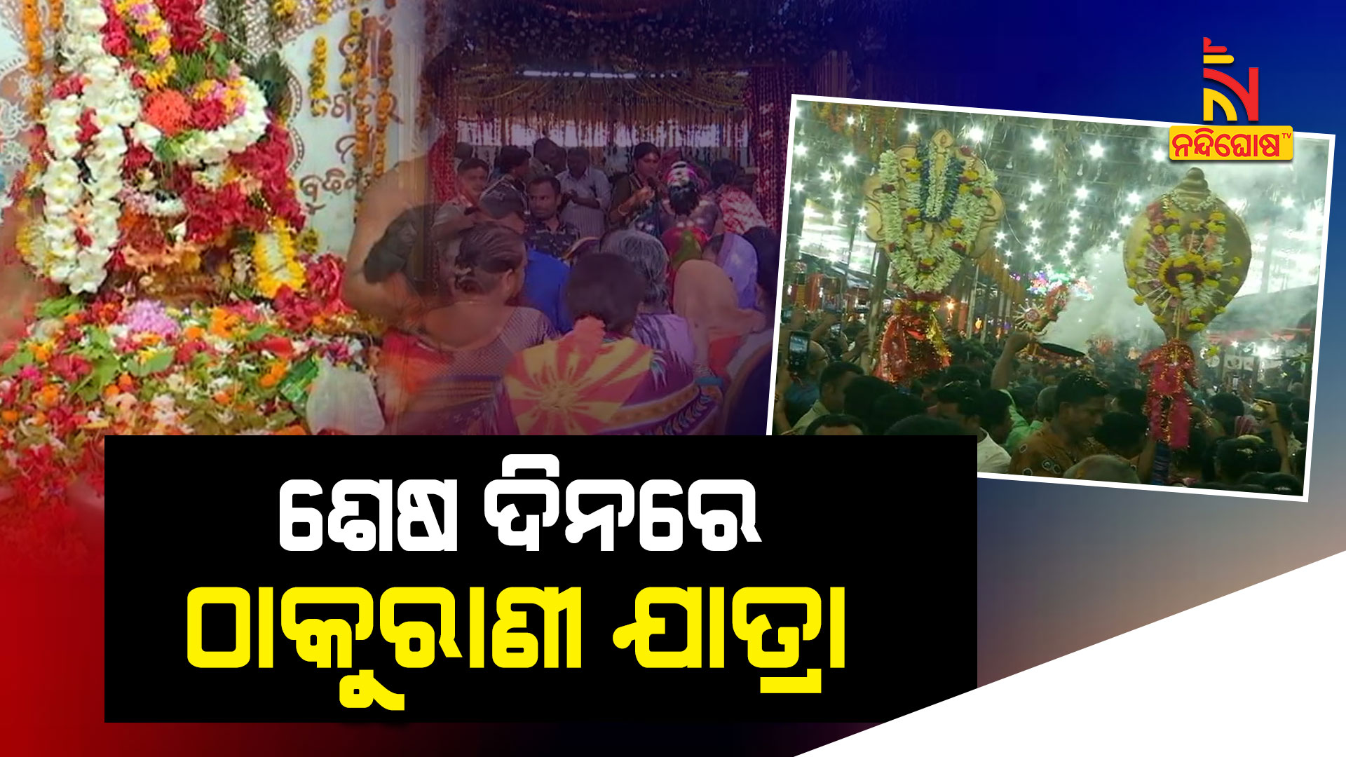 ବ୍ରହ୍ମପୁର : ଆଜି ବ୍ରହ୍ମପୁର ଠାକୁରାଣୀ ଯାତ୍ରାର ଶେଷ ଦିନ । ଦିନ ତମାମ ଅସ୍ଥାୟୀ ମଣ୍ଡପରେ ଦର୍ଶନ ଦେବା ପରେ ମଧ୍ୟରାତ୍ରୀରେ ମୁଖ୍ୟ ମନ୍ଦିରକୁ ଫେରିବେ ମାଆ । ବାପଘରୁ ଭାରତୁରା ନେଇ ଶାଶୂଘରକୁ ଯିବେ ମାଆ ସାଆନ୍ତାଣୀ । ଝିଅ ବିଦାବେଳେ ବାପଘର ସାହିରେ ଦେଖିବାକୁ ମିଳିବ ଭାବପୂର୍ଣ୍ଣ ଦୃଶ୍ୟ । ଏହାପରେ ବେଷଭୂଷା ସହ ଦେଶିବେହେରା ସାହିରୁ ମୁଖ୍ୟ ମନ୍ଦିରକୁ ବାହାରିବ ବିରାଟ ପଟୁଆର ।