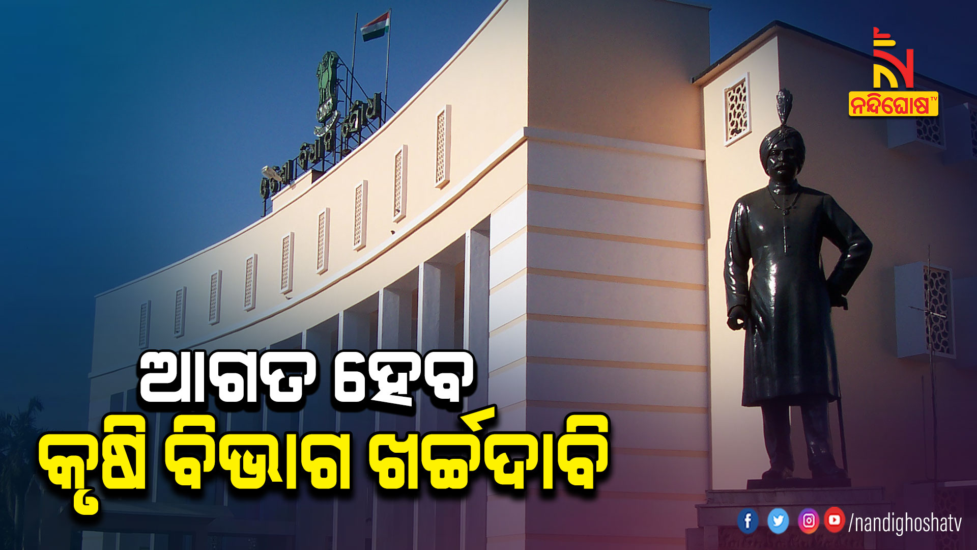 ଆଜି ବିଧାନସଭାରେ ୨୦୨୩-୨୪ ଆର୍ଥିକ ବର୍ଷ ପାଇଁ କୃଷି ବିଭାଗର ଖର୍ଚ୍ଚଦାବି ଆଗତ କରିବେ କୃଷି ମନ୍ତ୍ରୀ ରଣେନ୍ଦ୍ର ପ୍ରତାପ ସ୍ବାଇଁ । ଖର୍ଚ୍ଚଦାବିର ପରିମାଣ ୭ ହଜାର ୧୩୫ କୋଟି ୮୯ ଲକ୍ଷ ୪୮ହଜାର ଟଙ୍କା ଧାର୍ଯ୍ୟ କରାଯାଇଛି । ପ୍ରଶ୍ନକାଳରେ କୃଷି, ଖାଦ୍ୟ ଯୋଗାଣ ଓ ଖାଉଟି କଲ୍ୟାଣ, ବିଦ୍ୟାଳୟ ଓ ଗଣଶିକ୍ଷା, ଉଚ୍ଚଶିକ୍ଷା, ଶ୍ରମ, ସମବାୟ, ମତ୍ସ୍ୟ ଓ ପ୍ରାଣୀସଂପଦ ବିକାଶ ବିଭାଗର ପ୍ରଶ୍ନୋତ୍ତର କାର୍ଯ୍ୟକ୍ରମ ରହିଛି ।