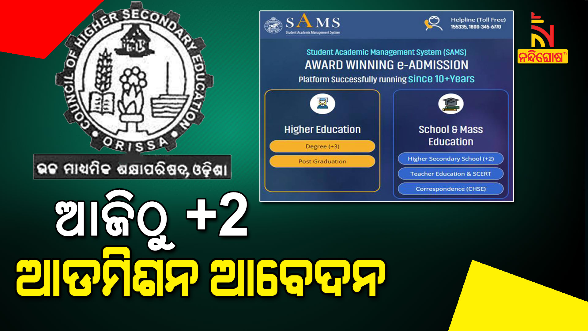 ଭୁବନେଶ୍ୱର: ଆଜିଠୁ ଯୁକ୍ତ ଦୁଇ ନାମଲେଖା ପାଇଁ ଆବେଦନ ପ୍ରକ୍ରିୟା ଆରମ୍ଭ । SAM’s ପୋର୍ଟାଲରେ ଛାତ୍ରଛାତ୍ରୀ ଯୁକ୍ତ ଦୁଇ ଆଡମିଶନ ନେଇ ଆବେଦନ କରିପାରିବେ । ଉଚ୍ଚ ମାଧ୍ୟମିକ ଶିକ୍ଷା ନିର୍ଦ୍ଦେଶାଳୟ ଓ ବିଭାଗର ଅଧିକାରୀଙ୍କୁ ନେଇ ଗଠିତ ହାଇ ପାଓ୍ବାର କମିଟି ବୈଠକ ପରେ ଏହି ନିଷ୍ପତ୍ତି ନିଆଯାଇଛି । ନାମଲେଖା ପରେ ୟୁଜିସି ଗାଇଡଲାଇନ ମୁତାବକ ପାଠପଢ଼ା ଆରମ୍ଭ ହେବ । କମିଟିର ନିଷ୍ପତି ମୁତାବକ କରୋନା ପାଇଁ କୌଣସି ଆଡ଼ମିଶନ ଫି ବୃଦ୍ଧି କରାଯିବନାହିଁ ।