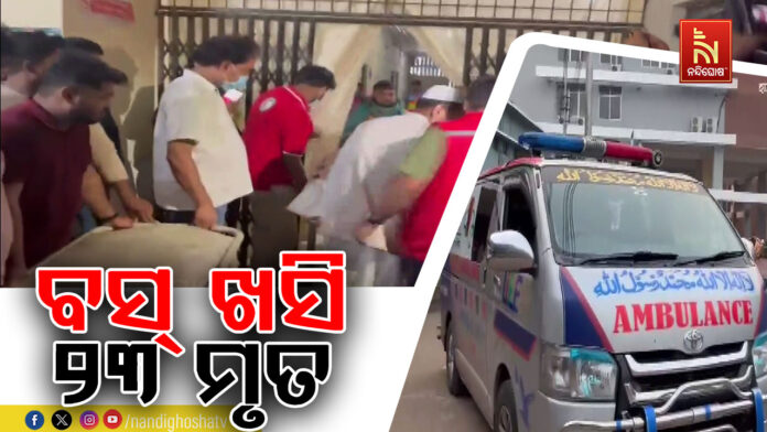 ନନ୍ଦିଘୋଷ ବ୍ୟୁରୋ : ବାଂଲାଦେଶ ରାଜବାରିରେ ମର୍ମନ୍ତୁଦ ବସ୍ ଦୁର୍ଘଟଣା। ପଦ୍ମା ନଦୀରେ ବସ୍ ଖସିଯିବାରୁ ୨୩ ଜଣଙ୍କ ମୃତ୍ୟୁ ଘଟିଛି। ଦୁର୍ଘଟଣାରେ ଅନେକ ଆହତ ହୋଇଛନ୍ତି। ରାତିରେ ବସ୍ ଦୁର୍ଘଟଣା ଘଟିବା ଯୋଗୁ ଉଦ୍ଧାର ପ୍ରକ୍ରିୟା ବିଳମ୍ବ ଘଟିଥିଲା। ଆହତମାନଙ୍କୁ ସ୍ଥାନୀୟ ହସ୍ପିଟାଲରେ ଭର୍ତ୍ତି କରାଯାଇଛି। ବର୍ତ୍ତମାନ ସୁଦ୍ଧା ୨୩ ଜଣଙ୍କ ମୃତଦେହ ଉଦ୍ଧାର ହୋଇଛି। କିଛି ଯାତ୍ରୀ ନିଖୋଜ ହୋଇଥିବା ସୂଚନା ମିଳିଛି। ଘଟଣାସ୍ଥଳରେ ଅଗ୍ନିଶମ ବାହିନୀ, ନୌସେନା, ପୋଲିସ ଓ ଅନ୍ୟ ବାହିନୀ ମୁତୟନ ହୋଇ ଉଦ୍ଧାର କରିଥିଲେ। ରାଜବାରି ଅନ୍ତର୍ଗତ ଦୌଲତାଦିଆରେ ଘଟିଥିଲା ଅଘଟଣ। ବସରେ ପ୍ରାୟ ୫୦ ଯାତ୍ରୀ ଥିଲେ। ଢାକାଠାରୁ ୧୨୮ କିଲୋମିଟର ଦୂରରେ ଘଟିଥିଲା ଦୁର୍ଘଟଣା। ଦୁର୍ଘଟଣାସ୍ଥଳରୁ ବସକୁ କ୍ରେନ ଜରିଆରେ ଉଠାଯାଇଥିଲା।
