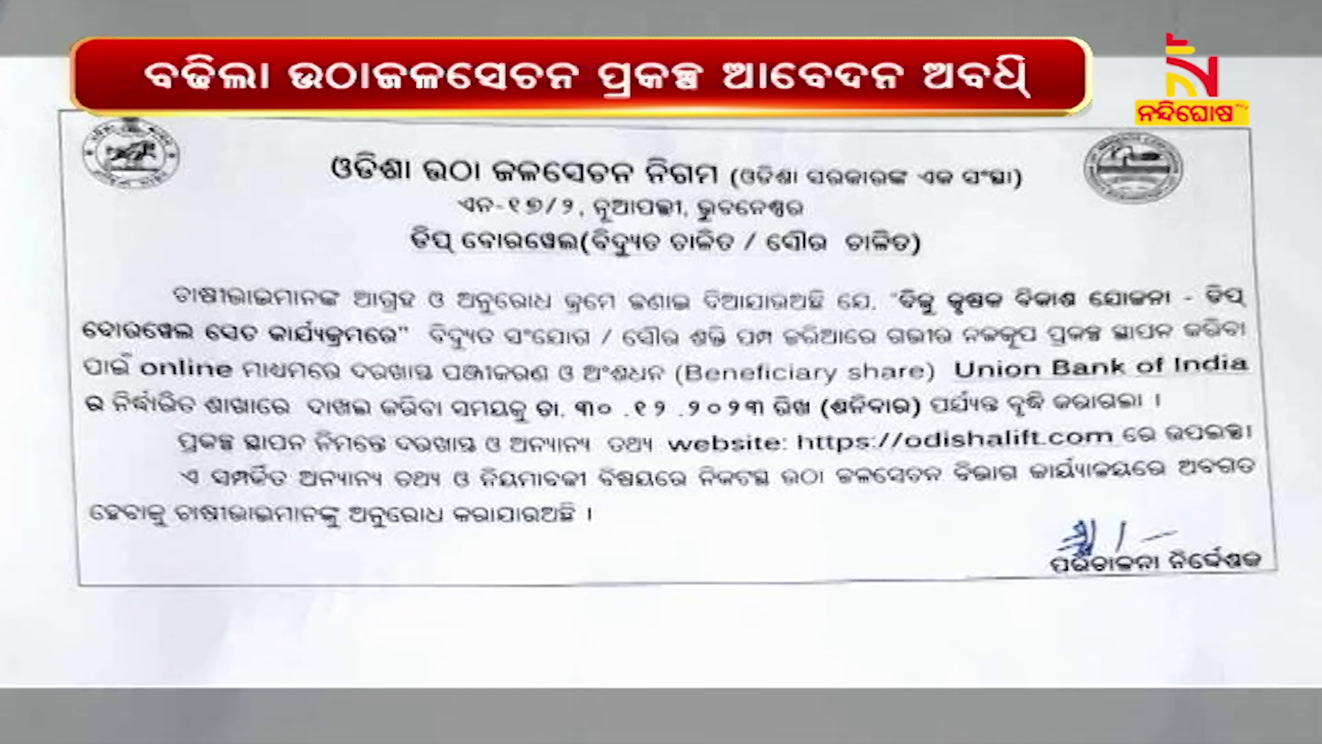 ଉମରକୋଟ: କଥା ରଖିଲେ ସରକାର। ଚାଷୀଙ୍କୁ ମିଳିଲା ଆଶ୍ୱସ୍ତି। ଓଡ଼ିଶା ଉଠା ଜଳସେଚନ ନିଗମ ଦ୍ଵାରା ବିଜୁ କୃଷକ ବିକାଶ ଯୋଜନାରେ ଡିପ୍ ବୋରୱେଲ ସେଚ କାର୍ଯ୍ୟକ୍ରମ ମାଧ୍ୟମରେ ବିଦ୍ୟୁତ୍ ସଂଯୋଗ ଓ ସୌର ଶକ୍ତି ପମ୍ପ ଜରିଆରେ ଗଭୀର ନଳକୂପ ପ୍ରକଳ୍ପ ସ୍ଥାପନ କରିବାକୁ ଆବେଦନ ପାଇଁ ଥିବା ଦରଖାସ୍ତ ଓ ପଞ୍ଜିକରଣ ତାରିଖ୍ ଘୁଞ୍ଚିଲା। ଡିସେମ୍ବର ୨୨ ରୁ ୩୦ କୁ ଘୁଞ୍ଚାଇଲେ ସରକାର । ଆସନ୍ତା ୩୦ ତାରିଖ ପର୍ଯ୍ୟନ୍ତ ବ୍ୟାଙ୍କ୍ ରେ ଡିପୋଜିଟ କରି ପାରିବେ ଚାଷୀ।ଚାଷ ଜମିରେ ନଳକୂପ ଖୋଳିବା ପାଇଁ ଅନ ଲାଇନ୍ ଆବେଦନ ତାରିଖ ପ୍ରଥମେ ୧୬ ଥିଲା । କେବଳ ଗୋଟିଏ ବ୍ୟାଙ୍କରେ ଡିପୋଜିଟ କରିବାକୁ ବିଭାଗ ତରଫରୁ ନିୟମ ଥିଲା । ଏହାପରେ ସମୟ ସୀମାକୁ ୨୨ ତାରିଖ କୁ ସମ୍ପ୍ରସାରଣ କରାଗଲା । କିନ୍ତୁ ଏହି ସମୟ ସୀମା କୁ ଆହୁରି ଅଧିକ ସମୟ ବଢ଼ାଇବା ପାଇଁ ଚାଷୀମାନେ ସରକାର ଙ୍କୁ ଅନୁରୋଧ କରିଥିଲେ । ଶେଷରେ ଆସନ୍ତା ୩୦ ତାରିଖକୁ ଶେଷ ଅବଧି ସମୟ ବୃଦ୍ଧି କରାଯାଇଛି। ସମୟ ସୀମା ବଢାଇଥିବାରୁ ଚାଷୀମାନେ ମୁଖ୍ୟମନ୍ତ୍ରୀଙ୍କ ସହ 5T ଅଧ୍ୟକ୍ଷ କାର୍ତ୍ତିକ ପାଣ୍ଡିଆନଙ୍କୁ ଧନ୍ୟବାଦ ଜଣାଇଛନ୍ତି