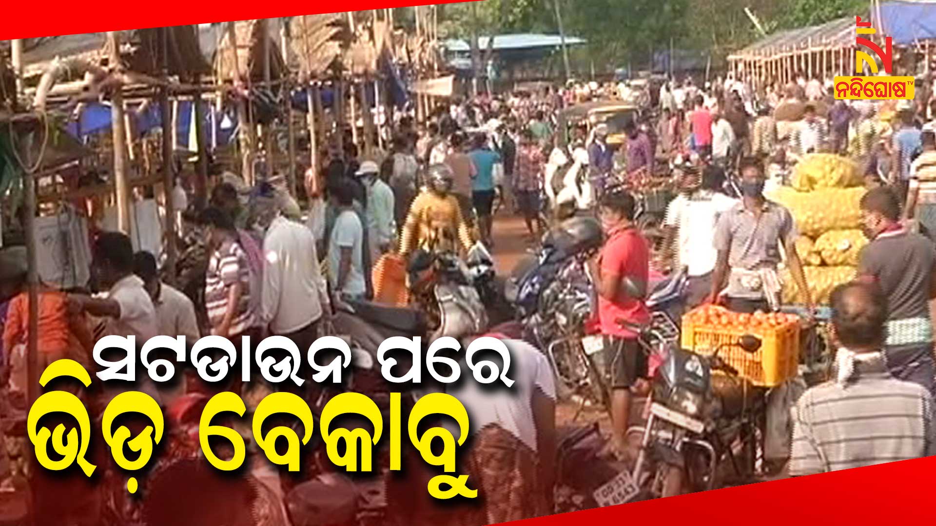 ଭୁବନେଶ୍ୱର: ସପ୍ତାହାନ୍ତ ସଟଡାଉନ ପରେ ରାଜଧାନୀ ର ବିଭିନ୍ନ ହାଟରେ ପ୍ରବଳ ଭିଡ। ୟୁନିଟ ଓ୍ବାନ୍ ହାଟରେ ପ୍ରବଳ ଭିଡ ପରିଲକ୍ଷିତ ହେଉଛି। ଲକଡାଉନ ସତ୍ବେ ହଜାର ହଜାର ଲୋକ ହାଟରେ ଭିଡ କରିଥିବା ଦେଖିବାକୁ ମିଳିଛି। ସକାଳ ୬ଟାରୁ ଅପରାହ୍ନ ୧୨ ଟା ପର୍ଯ୍ୟନ୍ତ ଅତ୍ୟାବଶ୍ୟକ ସାମଗ୍ରୀ ଦୋକାନ ଖୋଲିବା ପାଇଁ ରାଜ୍ୟ ସରକାର ନିୟମ କୋହଳ କରିଥିବା ବେଳେ ଲୋକମାନେ ଏହାର ଫାଇଦା ନେଉଛନ୍ତି। ଘରଠାରୁ ମାତ୍ର ୫୦୦ ମିଟର ଦୂର ମଧ୍ୟରେ ଚାଲଚାଲି ଯାଇ ପରିବା ଏବଂ ଗ୍ରୋସରୀ କିଣିବା ପାଇଁ ରାଜ୍ୟ ସରକାର ଅନୁମତି ଦେଇଥିଲେ ମଧ୍ୟ ଲୋକମାନେ ଘରଠାରୁ ଅନେକ ଦୂର ଗାଡିରେ ଯାଇ କିଣାକିଣି କରୁଛନ୍ତି। ଫଳରେ କିଛି ହାଟରେ ଖାଁ ଖାଁ ପରିବେଶ ଦେଖିବାକୁ ମିଳୁଥିବା ବେଳେ ବଡବଡ ହାଟରେ ପ୍ରବଳ ଭିଡ ହେଉଛି। ଲୋକମାନେ ମାସ୍କ ପିନ୍ଧିଥିଲେ ମଧ୍ୟ ସାମାଜିକ ଦୂରତା ର ଢେର ଉଲଙ୍ଘନ କରୁଛନ୍ତି।