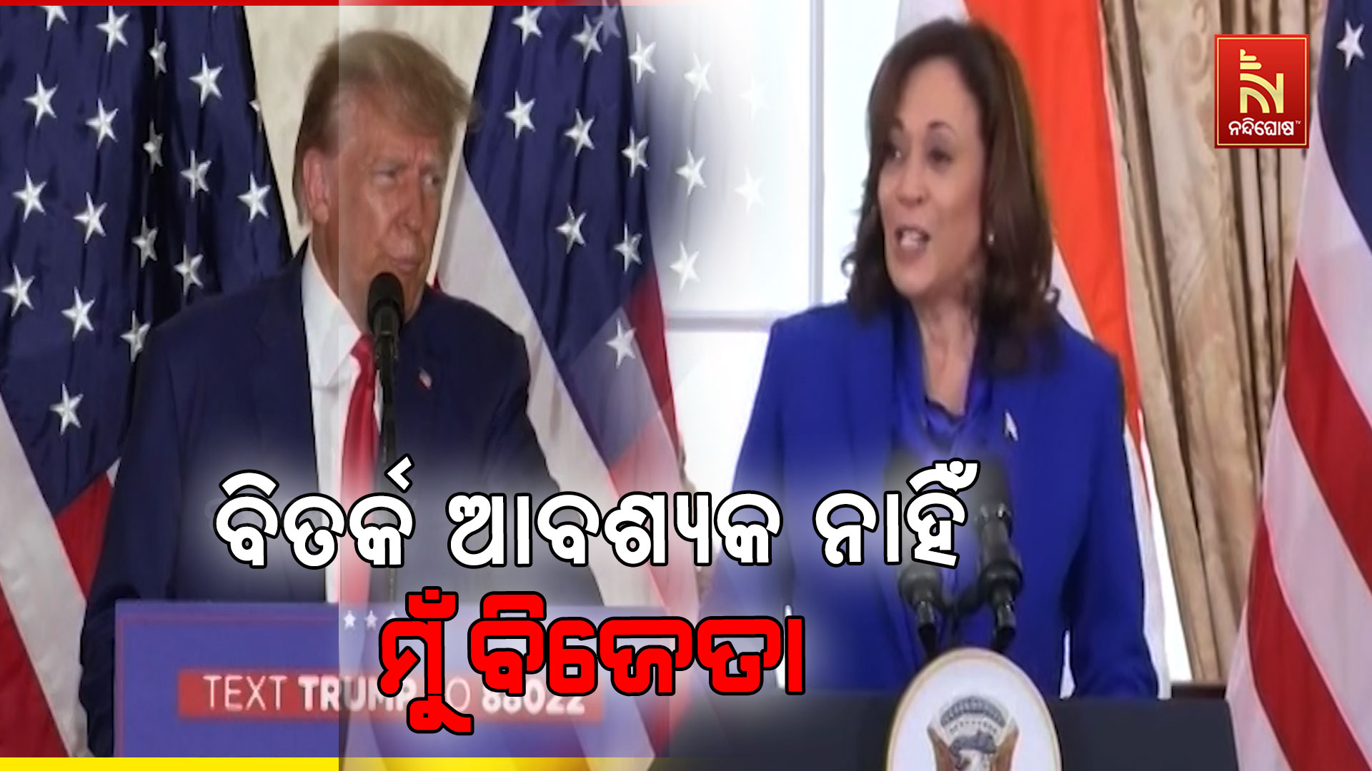 ନନ୍ଦଘୋଷ ବ୍ୟୁରୋ :  ଆମେରିକା ନିର୍ବାଚନ ପ୍ରସଙ୍ଗ । ଦ୍ବିତୀୟ ପର୍ଯ୍ଯାୟ ପ୍ରେସିଡେନସିଆଲ ଡିବେଟରେ ଭାଗନେବେନି ରିପ୍ଲବିକାନ ପ୍ରାର୍ଥୀ ଡୋନାଲଡ ଟ୍ରମ୍ପ । ଡେମୋକ୍ରାଟ ପ୍ରାର୍ଥୀ କମଳା ହାରିସଙ୍କ ସହ ଆଉ ଡିବେଟ କରିବିନି ବୋଲି ବୋଲି କହିଛନ୍ତି ଟ୍ରମ୍ପ । ବିତର୍କ ନକରିବାର କାରଣ ଜଣାଇ ଟ୍ରମ୍ପ କହିଛନ୍ତି, ଯେତେବେଳେ ଜଣେ ଯୋଦ୍ଧା ଆଉ ଥରେ ଖେଳିବାକୁ କହେ ତାହାର ଅର୍ଥ ହେଉଛି ମୁଁ ଜିତିବି । ଏଣୁ ପୁଣିଥରେ ବିତର୍କର ଆବଶ୍ଯକତା ନାହିଁ ବୋଲି ଟ୍ରମ୍ପ କହିଛନ୍ତି । ପୂର୍ବରୁ ପ୍ରଥମ ଡିବେଟରେ ବହୁ ପ୍ରସଙ୍ଗରେ ମୁହାଁମୁହିଁ ହୋଇଥିଲେ କମଳା ହାରିସ ଓ ଡୋନାଲଡ ଟ୍ରମ୍ପ । ଫିଲାଡେଲଫିଆର ନ୍ୟାସନାଲ କନଷ୍ଟିଚ୍ୟୁସେନ ସେଣ୍ଟରରେ ଦୁଇ ପ୍ରାର୍ଥୀଙ୍କ ମଧ୍ଯରେ ହୋଇଥିଲା ବାକ୍ ଯୁଦ୍ଧ । ଟ୍ରମ୍ପ ପୁନର୍ବାର ରାଷ୍ଟ୍ରପତି ହେଲେ ରୁଷ- ୟୁକ୍ରେନ୍ ଯୁଦ୍ଧ ୨୪ ଘଣ୍ଟା ଭିତରେ ଶେଷ କରିଦେବେ ବୋଲି ଦୃଢୋକ୍ତି ଦେଖାଇଥିଲେ । ୟୁକ୍ରେନ ପଛରେ ଆମେରିକାର ହାତ ରହିଛି ଖୋଲାଖୋଲି କହିବା ପରେ କମଳା ହାରିସ ଏହାର ତୀବ୍ର ବିରୋଧ କରିଥିଲେ । ଟ୍ରମ୍ପଙ୍କ ବିଦେଶ ନୀତି ସବୁଠୁ ଦୁର୍ବଳ ବୋଲି କମଳା କହିଥିଲେ । ଅନ୍ଯାନ୍ଯ ପ୍ରସଙ୍ଗରେ ମଧ୍ଯ ଉଭୟଙ୍କ ମଧ୍ଯରେ କଡା ଟକ୍କର ଦେଖିବାକୁ ମିଳିଥିଲା । ଅନୁପ୍ରବେଶ ନୀତି, ଅର୍ଥନୀତି ଓ ସମ୍ବିଧାନ ପ୍ରସଙ୍ଗରେ ଉଭୟ ବିତର୍କ କରିଥିଲେ । ନଭେମ୍ବର ୫ ତାରିଖରେ ଆମେରିକା ଭୋଟ ହେବ।