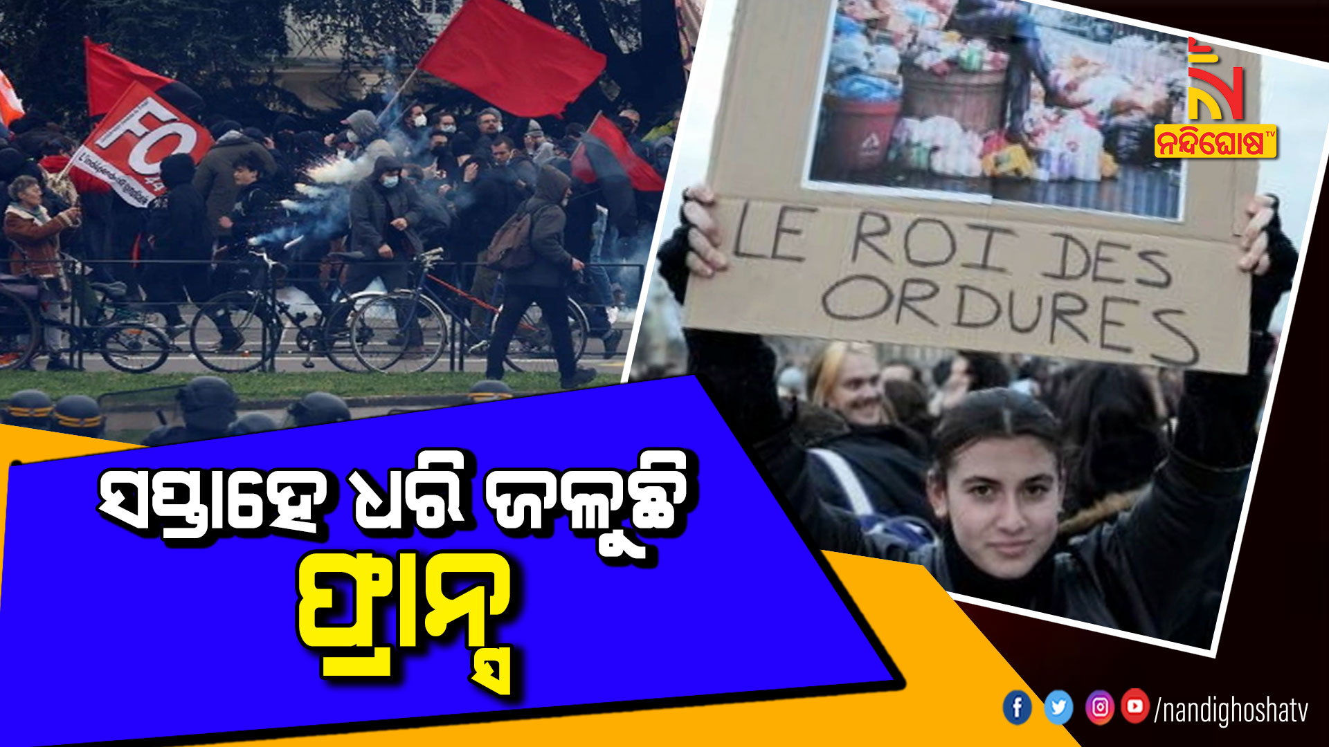 ପ୍ୟାରିସ: ସପ୍ତାହେ ଧରି ଜଳୁଛି ଫ୍ରାନ୍ସ । ନୂଆ ପେନସନ ଆଇନକୁ ବିରୋଧ କରି ଫ୍ରାନ୍ସରେ ଉଗ୍ର ହେଉଛି ଗଣବିକ୍ଷୋଭ । ନୂଆ ପେନସନ୍ ଆଇନକୁ ବିରୋଧ କରି ୩୫ ଲକ୍ଷରୁ ଅଧିକ ଲୋକ ରାସ୍ତାକୁ ଓହ୍ଲାଇବା ସହ ବିଭିନ୍ନ ସ୍ଥାନରେ ନିଆଁ ଲଗାଇ ଦେଇଛନ୍ତି । ରାଜଧାନୀ ପ୍ୟାରିସରେ ୮ ଲକ୍ଷ ଲୋକ ଏକାଠି ହୋଇ ସରକାର ବିପକ୍ଷରେ ପ୍ରଦର୍ଶନ କରିଛନ୍ତି । ପେନସନ୍ ବିଲ ଓ ରାଷ୍ଟ୍ରପତି ମାକ୍ରନଙ୍କ ବିରୋଧରେ ପୋଷ୍ଟର, ପ୍ଲାକାର୍ଡ ଧରି ପ୍ରଦର୍ଶନ ଜାରି ରହିଛି । ଗତ ସପ୍ତାହେରୁ ଅଧିକ ସମୟ ଧରି ସଡ଼କରେ ହିଂସା ଜାରି ରହିଥିବା ବେଳେ ବିକ୍ଷୋଭକାରୀଙ୍କ ଉପରକୁ ପୋଲିସ ଲୁହ ବୁହା ଗ୍ୟାସ ମାଡ଼ କରିଛି ।