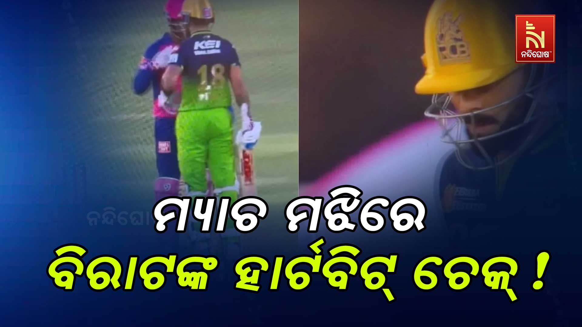 ନନନ୍ଦିଘୋଷ ବ୍ୟୁରୋ: ଚାଲିଥିଲା ମ୍ୟାଚ୍, ହଠାତ୍ ଚମକି ପଡ଼ିଥିଲେ ବିରାଟଙ୍କ ଫ୍ୟାନ୍ସ । କାରଣ ମ୍ୟାଚ ମଝିରେ ବିରାଟ ହାର୍ଟରେ ମାରିଲେ ହାତ । ହାର୍ଟବିଟ୍ ବିରାଟଙ୍କର ଚେକ୍ କରିଥିଲେ । ଯାହାର ଭିଡିଓ ଏବେ ସୋସିଆଲ ମିଡିଆରେ ବେଶ ଭାଇରାଲ ହେବାରେ ଲାଗିଛି । ରବିବାର ଖେଳାଯାଇଥିବା ରୟାଲ ଚ୍ୟାଲେଞ୍ଜର ବାଙ୍ଗାଲୋର ଏବଂ ରାଜସ୍ଥାନ ରୟାଲ୍ସ ମ୍ୟାଚ ସମୟରେ ଏମିତି କିଛି ଦେଖିବାକୁ ମିଳିଥିଲା । ଯାହାକୁ ଦେଖି ଫ୍ୟାନ୍ସମାନେ ଚାହିଁ ରହିଥିଲେ । ତେବେ ବିରାଟଙ୍କର କଣ ହେଲା ବୋଲି ଫ୍ୟାନ୍ସମାନେ ଚକିତ ହୋଇଥିଲେ ।