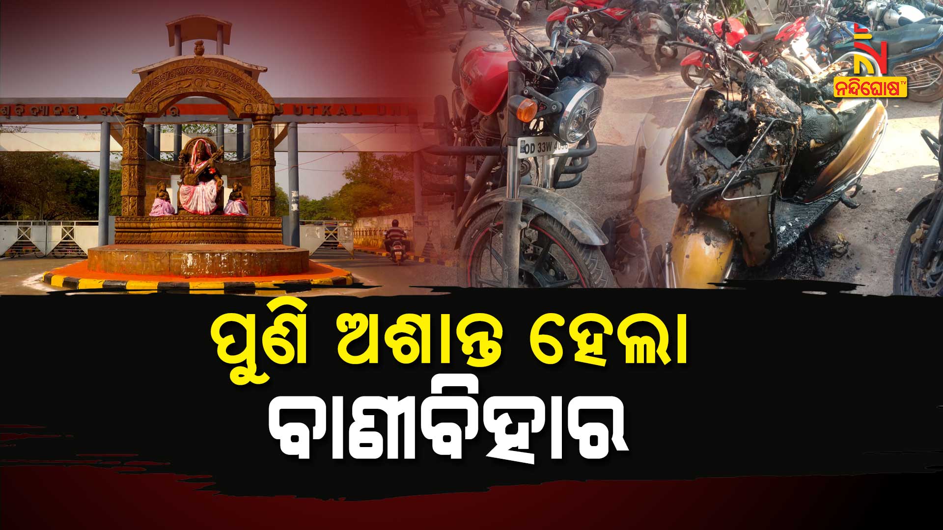 ଭୁବନେଶ୍ୱର: ପୁଣି ଅଶାନ୍ତ ହେଲା ବାଣୀ ବିହାର କ୍ୟାମ୍ପସ । ଉତ୍କଳ ବିଶ୍ବବିଦ୍ୟାଳୟରେ ପୁଣି ଦେଖା ଦେଇଛି ଉତ୍ତେଜନା । ଗତକାଲି ବିଳମ୍ବିତ ରାତିରେ ଦୁଇଟି ବାଇକ୍ ପୋଡ଼ିଦେଲେ ଦୁର୍ବୃତ୍ତ । ଗୋଦାବରୀଶ ହଷ୍ଟେଲ ନିକଟରେ ଗାଡ଼ି ପୋଡ଼ାକୁ ନେଇ କ୍ୟାମ୍ପସରେ ଚାପା ଉତ୍ତେଜନା ଜାରି ରହିଛି ।
