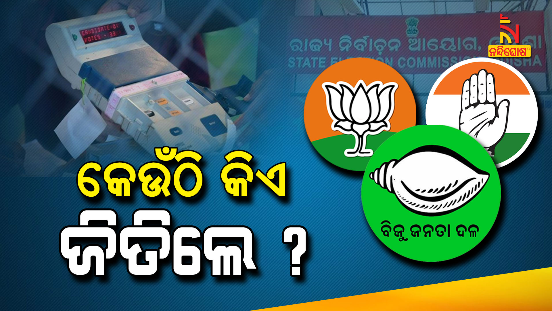ସେହିପରି ୩୦ ଜିଲ୍ଲାର ୧୦୫ ପୌର ପରିଷଦରେ ବିଜେଡିକୁ ମିଳିଛି ବଡ ସଫଳତା । ୭୩ ଅଧ୍ୟକ୍ଷ ପଦରେ ବିଜେଡି ପ୍ରାର୍ଥୀ ବିଜୟୀ ହୋଇଥିବା ବେଳେ ବିଜେପି ୧୬, କଂଗ୍ରେସ ୭ ଓ ସ୍ବାଧୀନ ୯ଟି ପଦରେ ବାଜିମାତ କରିଛନ୍ତି ।