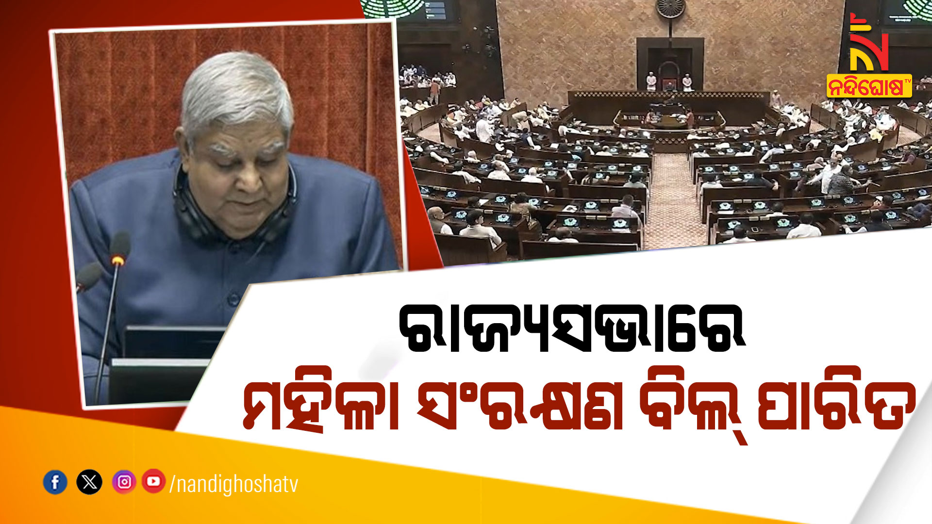 ନୂଆଆଦିଲ୍ଲୀ: ରାଜ୍ୟସଭାରେ ପାରିତ ହେଲା ମହିଳା ସଂରକ୍ଷଣ ବିଲ୍ (ନାରୀ ଶକ୍ତି ବନ୍ଦନ ଅଧିନିୟମ) । ଆଜି ଗୃହରେ ଉପସ୍ଥିତ ଥିବା ସମସ୍ତ ସାଂସଦ ବିଲ୍ ସପକ୍ଷରେ ଭୋଟ୍ ଦେଇଛନ୍ତି । ବିଲ୍ ସପକ୍ଷରେ ପଡ଼ିଛି ୨୧୫ ଭୋଟ । ବିଲ୍ ବିରୋଧରେ ଗୋଟିଏ ବି ଭୋଟ ପଡ଼ିନାହିଁ । ସର୍ବସମ୍ମତି କ୍ରମେ ରାଜ୍ୟସଭାରେ ବିଲ୍ ପାରିତ ହୋଇଛି । ଲୋକସଭା ଏବଂ ଏବଂ ବିଧାନସଭାରେ ମହିଳାଙ୍କ ପାଇଁ ୩୩ ପ୍ରତିଶତ ସଂରକ୍ଷଣ ଦେବାର ରାସ୍ତା ଏବେ ଫିଟିଯାଇଛି । ଏହାକୁ ଲାଗୁ କରିବା ପାଇଁ ଲୋକସଭା ଏବଂ ରାଜ୍ୟସଭାରେ ଏହି ବିଲକୁ ଦୁଇ-ତୃତୀୟାଂଶ ବହୁମତରେ ପାରିତ ହେବାର ଆବଶ୍ୟକତା ଥିଲା । ଯାହାକି ପାରିତ ହୋଇଯାଇଛି ।
