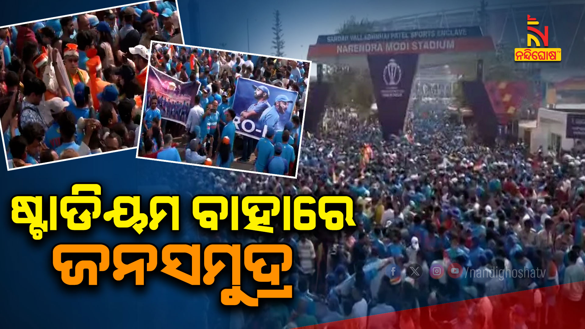 ନରେନ୍ଦ୍ର ମୋଦି ଷ୍ଟାଡିମୟ ଧିରେ ଧିରେ ନୀଳ ରଙ୍ଗରେ ରଙ୍ଗୀନ ହେବାକୁ ଲାଗିଛି । ଷ୍ଟାଡିୟମ ବାହାରେ ବିଭିନ୍ନ ଗେଟ୍ ଆଗରେ ଲାଗି ଗଲାଣି ଭିଡ଼ । ଏମିତି ଲାଗୁଛି ଯେମିତି ଏକ ଜନ ସମୁଦ୍ର ଷ୍ଟାଡିୟମ ମୁହାଁ । ହାତରେ ଜାତୀୟ ପତାକା, ଦେଖରେ ତ୍ରିରଙ୍ଗାର ଚିତ୍ରକୁ ଅଶୋକଚକ୍ର । ଯାହାକୁ ଚାହିଁବ ଦେଖିବ ଦେହରେ ଟିମ୍ ଇଣ୍ଡିଆ ଜର୍ସି ।