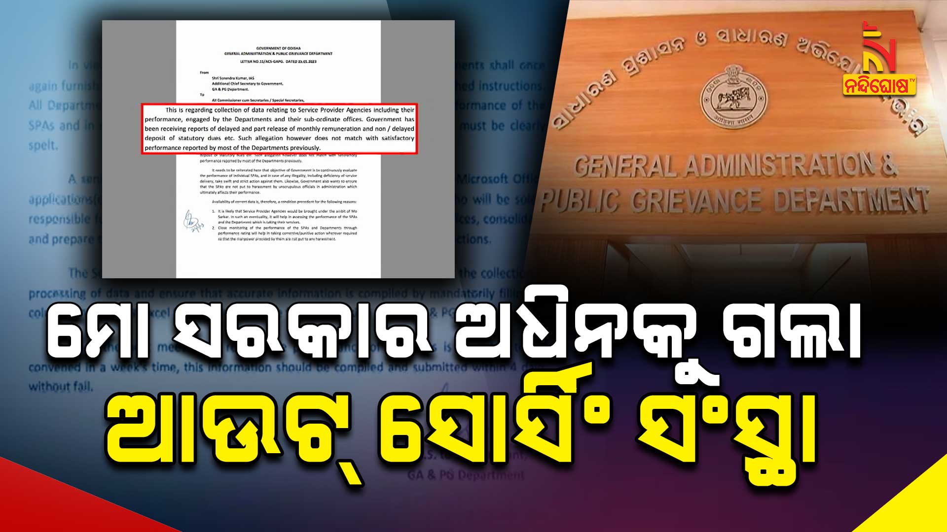 ଭୁବନେଶ୍ବର : ମୋ ସରକାର ଅଧିନକୁ ଗଲା ଆଉଟ୍ ସୋର୍ସିଂ ସଂସ୍ଥା l ଫଳରେ ଆଉଟ୍ ସୋର୍ସିଂ କର୍ମଚାରୀଙ୍କ ଉପରେ ମନ ଇଚ୍ଛା ନିର୍ଦ୍ଦେଶ ଜାରି କରି ପାରିବେନି ସଂପୃକ୍ତ ସଂସ୍ଥା l କାମ କରୁଥିବା ସଂସ୍ଥା ଠିକ୍ ସମୟରେ ଦରମା ଦେବାକୁ ନିର୍ଦ୍ଦେଶ ଦିଆଯାଇଛି । ନଦେଲେ ସଂପୃକ୍ତ ସଂସ୍ଥାକୁ ଆଉଟ୍ ସୋର୍ସିଂରୁ ବାଦ୍ ଦିଆଯିବା ସହ କଳା ତାଲିକା ଭୁକ୍ତ କରାଯିବ l କେବଳ ସେତିକି ନୁହେଁ ଯେଉଁ ଆଉଟ୍ ସୋର୍ସିଂ ଠିକ୍ ସମୟରେ ଦରମା, ଇଏସଆଇ ଓ ଇପିଏଫ ଦେଉଥିଲେ ସେମାନଙ୍କୁ ପୁରସ୍କୃତ କରାଯିବ l ଏନେଇ ସାଧାରଣ ପ୍ରଶାସନ ପକ୍ଷରୁ ଚିଠିରେ ନିର୍ଦ୍ଦେଶ ଦିଆଯାଇଛି l