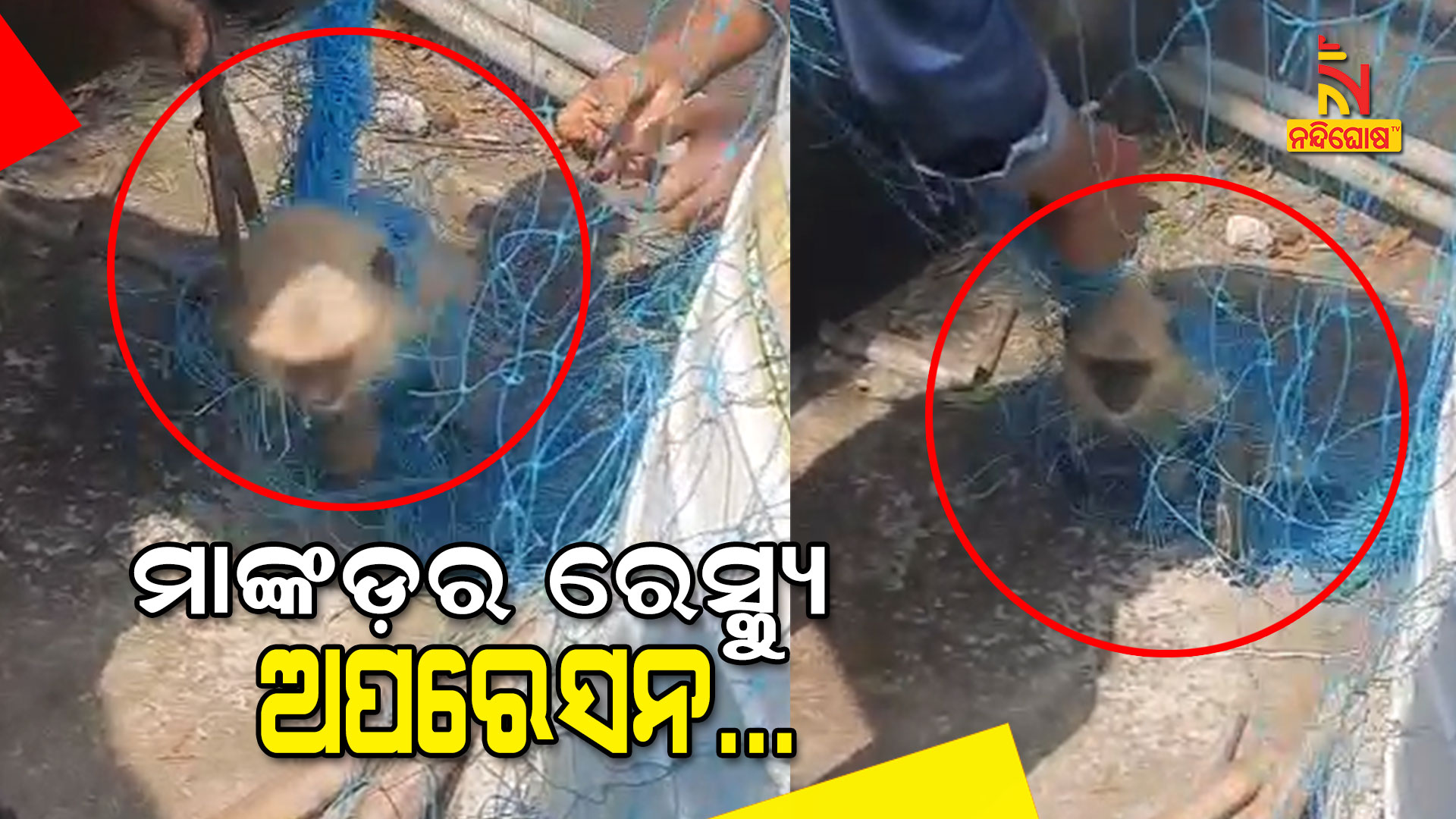 ଖାଦ୍ୟ ଖୋଜୁ ଖୋଜୁ ଜାଲରେ ଫସିଗଲା ମାଙ୍କଡ ଛୁଆ, ରେସ୍କ୍ୟୁ କଲେ ସ୍ୱେଚ୍ଛାସେବୀ