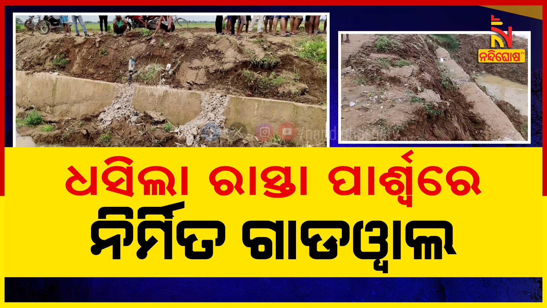 ନିମ୍ନମାନର କାର୍ଯ୍ୟ ଯୋଗୁ ଧସିଲା ରାସ୍ତା ପାର୍ଶ୍ଵରେ ନିର୍ମିତ ଗାଡୱାଲ