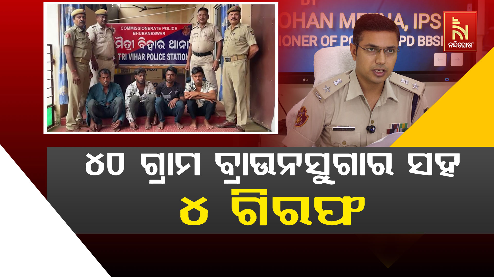 ୪୦ ଗ୍ରାମ ବ୍ରାଉନସୁଗାର ସହ ୪ ଜଣ ବ୍ୟବସାୟୀ ଗିରଫ