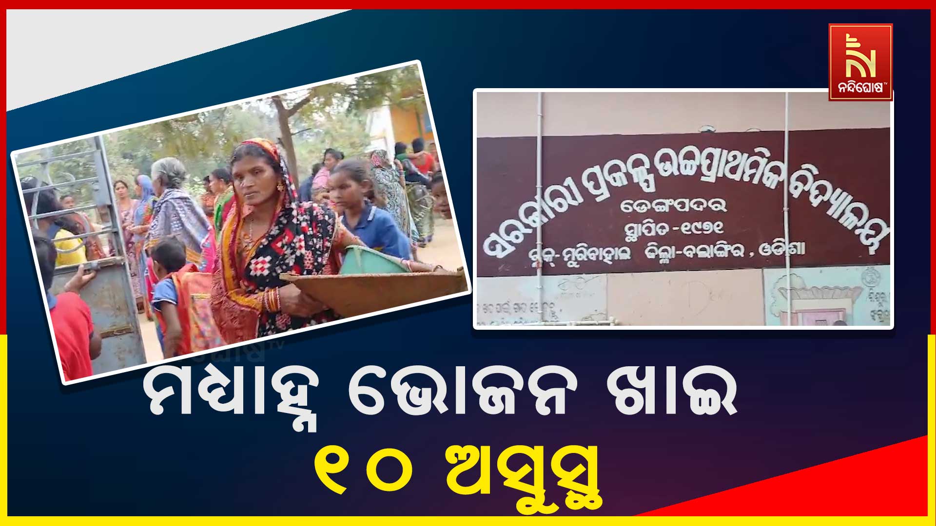 ଟିଟିଲାଗଡ଼ର ମୁରିବାହାଲ ବ୍ଲକ ଡେଙ୍ଗପଦର ଉଚ୍ଚ ପ୍ରାଥମିକ ବିଦ୍ୟାଳୟର ୧୦ ଛାତ୍ରଛାତ୍ରୀ ସର୍ପ ପକା ମଧ୍ୟାହ୍ନ ଭୋଜନ ଖାଇ ଅସୁସ୍ଥ ହୋଇଥିବା ଜଣାପଡିଛି । ସେମାନଙ୍କୁ ଟିଟିଲାଗଡ଼ ଏମସିଏଚ ହସ୍ପିଟାଲରେ ଭର୍ତ୍ତି କରାଯାଇଛି ।