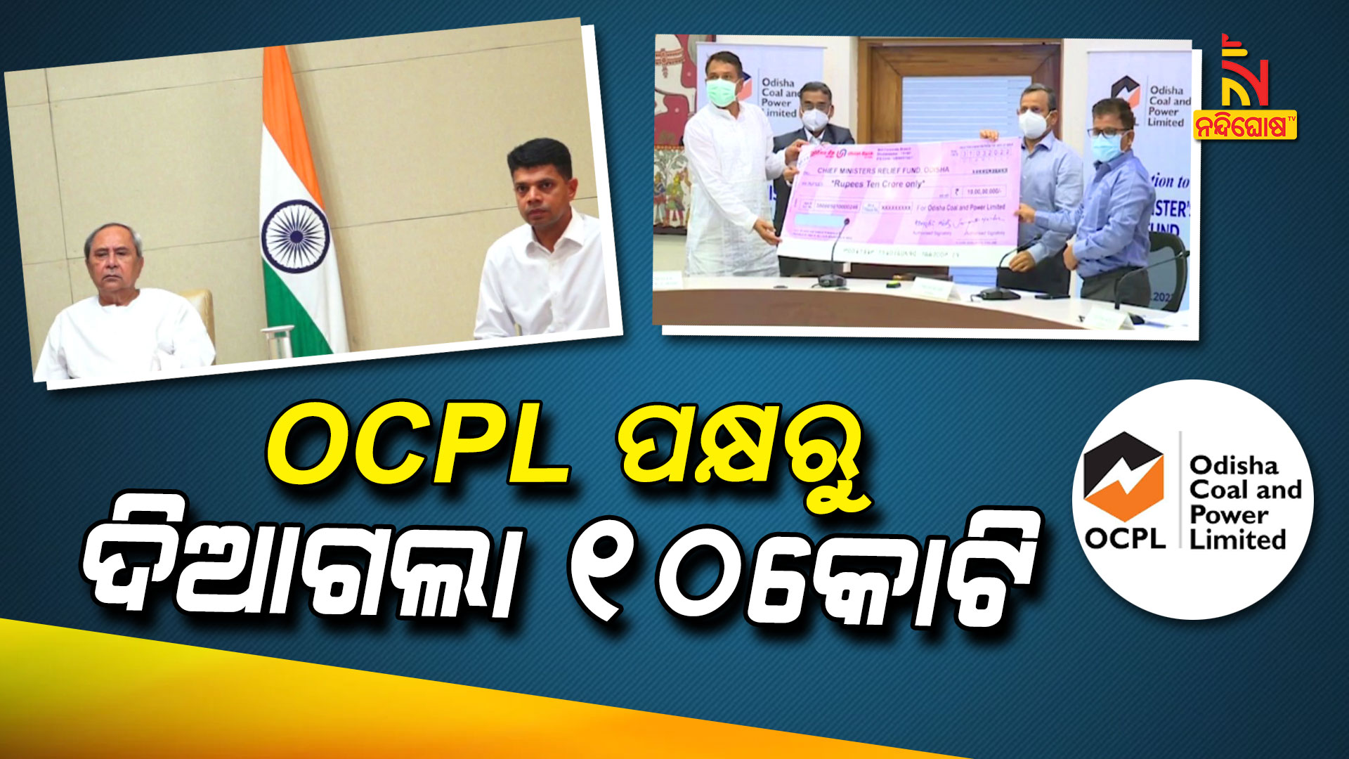 ଭୁବନେଶ୍ୱର: ଓଡିଶା ସରକାରଙ୍କର ଏକମାତ୍ର ସରକାରୀ କୋଇଲା ଉଦ୍ୟୋଗ ଓଡିଶା କୋଲ୍ ଆଣ୍ଡ ପାୱାର ଲିମିଟେଡ ପକ୍ଷରୁ ମୁଖ୍ୟମନ୍ତ୍ରୀଙ୍କ ରିଲିଫ ପାଣ୍ଠିକୁ ୧୦ କୋଟି ଟଙ୍କା ପ୍ରଦାନ କରାଯାଇଛି । ଆଜି ଏହି ଉପଲକ୍ଷେ ଲୋକସେବା ଭବନରେ ଆୟୋଜିତ ଏକ କାର୍ଯ୍ୟକ୍ରମରେ ଭିଡିଓ କନଫରେନ୍ସ ମାଧ୍ୟମରେ ମୁଖ୍ୟମନ୍ତ୍ରୀ ନବୀନ ପଟ୍ଟନାୟକଙ୍କ ଉପସ୍ଥିତିରେ ଶକ୍ତି ସଚିବ ନିକୁଞ୍ଜ ଧଳ ମୁଖ୍ୟମନ୍ତ୍ରୀଙ୍କ ରିଲିଫ୍ ପାଣ୍ଠିକୁ ୧୦ କୋଟି ଟଙ୍କାର ଏକ ଚେକ୍ ମୁଖ୍ୟ ଶାସନ ସଚିବ ସୁରେଶ ମହାପତ୍ରଙ୍କୁ ପ୍ରଦାନ କରିଥିଲେ । ଓସିପିଏଲ୍ର ଲାଭାଂଶରୁ ଏହି ଅର୍ଥ ପ୍ରଦାନ କରାଯାଇଛି ।