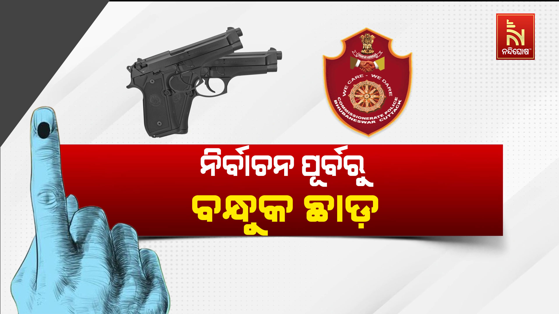 ଭୁବନେଶ୍ବର: ନିର୍ବାଚନ ପୂର୍ବରୁ ବନ୍ଧୁକ ଦାଖଲ ପାଇଁ ନିର୍ଦ୍ଦେଶ । ୧୪ ଶହ ୧୦ ଲାଇସେନ୍ସଧାରୀଙ୍କୁ ବନ୍ଧୁକ ଦାଖଲ ପାଇଁ ଶୀଘ୍ର ନୋଟିସ ଜାରି କରିବ କମିଶନରେଟ୍ ପୋଲିସ । ନିର୍ବାଚନକୁ ଅବାଧ ଓ ନିରପେକ୍ଷ କରିବା ଉପରେ ଡିସିପିଙ୍କ ଫୋକସ । ବନ୍ଧୁକ ଦାଖଲ ନକଲେ ଆଇନ ଅନୁଯାୟୀ କାର୍ଯ୍ୟାନୁଷ୍ଠାନ ଗ୍ରହଣ କରାଯିବ ବୋଲି କହିଛନ୍ତି ଭୁବନେଶ୍ବର ଡିସିପି ପ୍ରତୀକ ସିଂ ।
