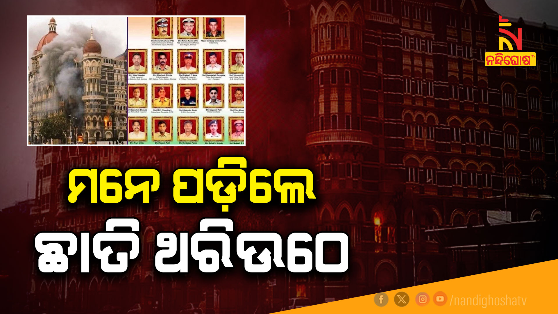 ଭୁବନେଶ୍ବର: ୨୬/୧୧ ଟେରର ଆଟାକ୍ । ୧୫ ବର୍ଷ ତଳେ ଆଜିର ଦିନରେ ମୁମ୍ବାଇରେ ଆତଙ୍କବାଦୀ ରଚିଥିଲେ ତାଣ୍ଡବ । ମୁମ୍ବାଇର ଛାତି ଥରାଇ ଦେଇଥିଲେ ୧୦ ଆତଙ୍କବାଦୀ । ସମୁଦ୍ର ପଥ ଦେଇ ପାକିସ୍ତାନରୁ ପଶି ଆସିଥିଲେ ଲସ୍କର-ଏ-ତୋଏବାର ଏହି ସଦସ୍ୟ । ନଭେମ୍ବର ୨୬ରୁ ୨୯ ମଧ୍ୟରେ ମୁମ୍ବାଇର ୧୨ଟି ଜାଗାରେ ବମିଂ ଓ ଗୁଳିମାଡ଼ ହୋଇଥିଲା । ଶତ୍ରୁଦେଶର ଯୋଜନା ସମ୍ପର୍କରେ ସାମାନ୍ୟ ସୁରାକ ପାଇପାରି ନଥିଲା ଭାରତୀୟ ଗୁଇନ୍ଦା ।