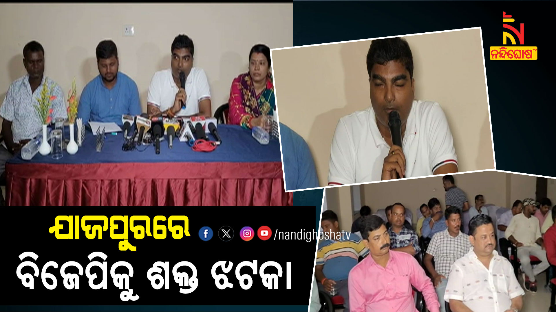ଯାଜପୁର ପାନ୍ଥଶାଳାରେ ଆୟୋଜିତ ସାମ୍ବାଦିକ ସମ୍ମିଳନୀରେ ଇସ୍ତଫା ନେଇ ସୂଚନା ଦେଇଛନ୍ତି ବିଜେପି ଛାଡ଼ିଥିବା କର୍ମକର୍ତ୍ତା। ଅଭିଯୋଗ ଅନୁସାରେ, ଦୀର୍ଘ ବର୍ଷ ଧରି ଭାରତୀୟ ଜନତା ପାର୍ଟିରେ କାର୍ଯ୍ୟ କରି ଆସୁଥିବା କର୍ମୀଙ୍କ ସୁଖ ଦୁଃଖରେ ଛିଡା ହେଉନାହାନ୍ତି ନେତା। କର୍ମୀଙ୍କୁ ସହଯୋଗ କରିବା ବଦଳରେ ଅଣଦେଖା କରାଯାଉଛି। ଜିଲ୍ଲା ସଭାପତି କୌଣସି କାର୍ଯ୍ୟରେ କର୍ମୀଙ୍କ ମତାମତ ନିଅନ୍ତି ନାହିଁ। ଫଳରେ ଅସନ୍ତୁଷ୍ଟ ହୋଇ କର୍ମୀମାନେ ସାମୂହିକ ଭାବେ ଦଳ ଛାଡ଼ିଛନ୍ତି। ଯାଜପୁର ଜିଲ୍ଲାରେ ଯେଉଁ ଦଳ ବିକାଶ କରୁଛି ଏବଂ ଲୋକଙ୍କ ସୁଖଦୁଃଖରେ ଠିଆ ହେଉଛି ସେହି ଦଳରେ କାମ କରିବାକୁ ସମସ୍ତେ ଆଗ୍ରହ ପ୍ରକାଶ କରିଛନ୍ତି।