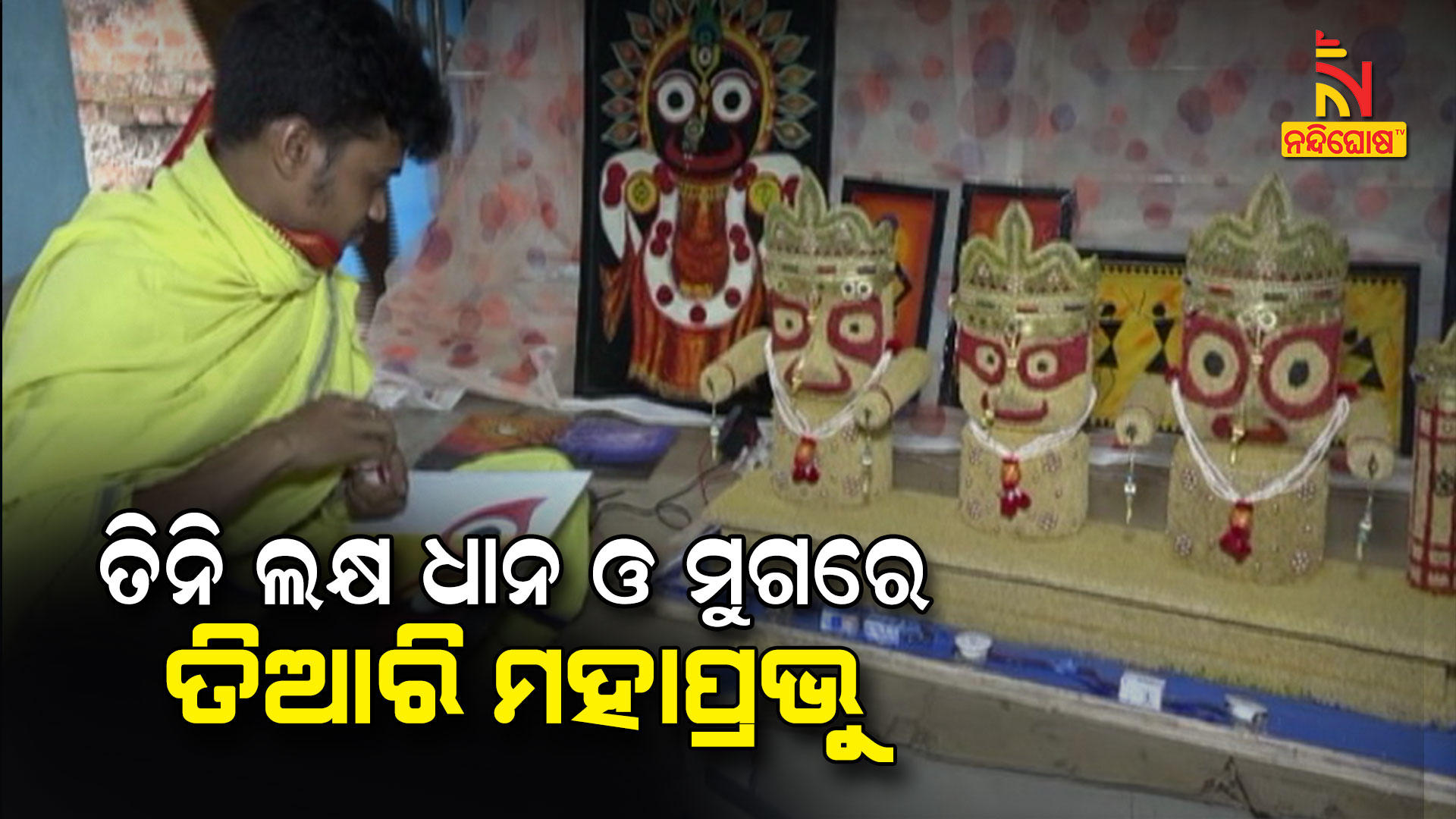 ନୟାଗଡ଼: ଶସ୍ୟରେ ମହାପ୍ରଭୁ । ଧାନରେ ଝଟକୁଛନ୍ତି ଚତୁର୍ଦ୍ଧାମୂର୍ତ୍ତି । ଶୁକ୍ଲ ଧାନ ଓ ମୁଗରେ ଚାରି ବିଗ୍ରହ । ଜଗନ୍ନାଥ,ବଳଭଦ୍ର, ଶୁଭଦ୍ରା, ଓ ସୁଦର୍ଶନଙ୍କର ଚତୁର୍ଦ୍ଧା ବିଗ୍ରହକୁ ତିଆରି କରିଛନ୍ତି ନୟାଗଡ଼ ଜିଲ୍ଲା ଦଶପଲ୍ଲାର ଜଣେ ୨୨ ବର୍ଷିୟ ଯୁବକ । ଜଗନ୍ନାଥ ପ୍ରେମୀ ତଥା ଅନନ୍ୟ ପ୍ରତିଭାଧାରୀ ଅବଦିତ ସାହୁ, ପ୍ରାୟ ୩ ଲକ୍ଷ ଧାନ ଓ ୩ ହଜାର ମୁଗରେ ମହାପ୍ରଭୁଙ୍କର ଏଭଳି ବିରଳ କଳାକୃତିକୁ ଶସ୍ୟରେ ଜୀବନ କରିଛନ୍ତି । ଏଥିପାଇଁ ତାଙ୍କୁ ତିନିମାସ କଠିନ ପରିଶ୍ରମ କରିବାକୁ ପଡିଛି ।