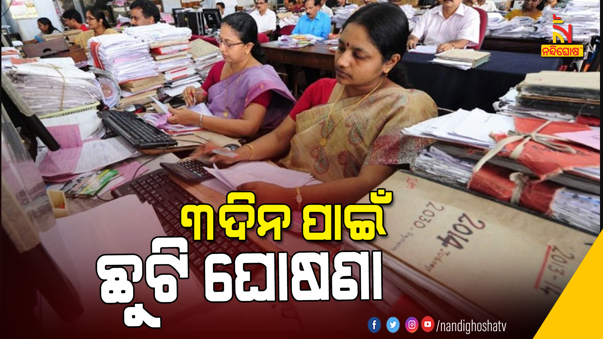 ଏହି ୩ଦିନ ପାଇଁ ଛୁଟି ଘୋଷଣା କଲେ ସରକାର