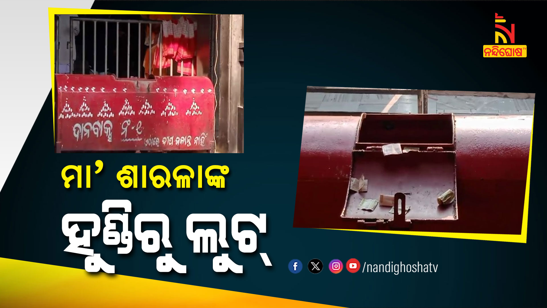 ଜଗତସିଂହପୁର: ଜଗତସିଂହପୁର ଜିଲ୍ଲାର ବାଣୀକ୍ଷେତ୍ର ଅଧିଷ୍ଠାତ୍ରୀ ଦେବୀ ମା’ ଶାରଳା ଠାକୁରାଣୀଙ୍କ ମୁଖ୍ୟ ହୁଣ୍ଡିରୁ ୩୦ ଲକ୍ଷରୁ ଉର୍ଦ୍ଧ୍ବ ଟଙ୍କା ଲୁଟ ହୋଇଯାଇଥିବା ଅଭିଯୋଗ। ମନ୍ଦିର ବେଢାରେ ସାତଟି ହୁଣ୍ଡି ରହିଥିବା ବେଳେ ମା’ ଶାରଳାଙ୍କ ସମ୍ମୁଖ ଭାଗରେ ରହିଥିବା ମୁଖ୍ୟ ହୁଣ୍ଡି ବାକ୍ସକୁ କେହି ଦୁର୍ବୃତ୍ତ ଏକ କଟର ସାହାଯ୍ୟରେ କାଟି ରେଂଚରେ ଖୋଲି ଲକ୍ଷାଧିକ ଟଙ୍କା ଲୁଟି ନେଇଥିବା ଅଭିଯୋଗ ହୋଇଛି।