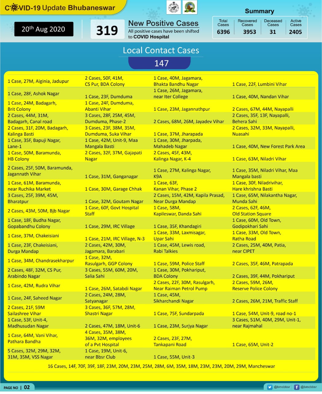 ଭୁବନେଶ୍ୱରରେ ଦିନକରେ ୩୧୯ କରୋନା ସଂକ୍ରମିତ ଚିହ୍ନଟ, ସୁସ୍ଥ ହେଲେ ୧୧୩