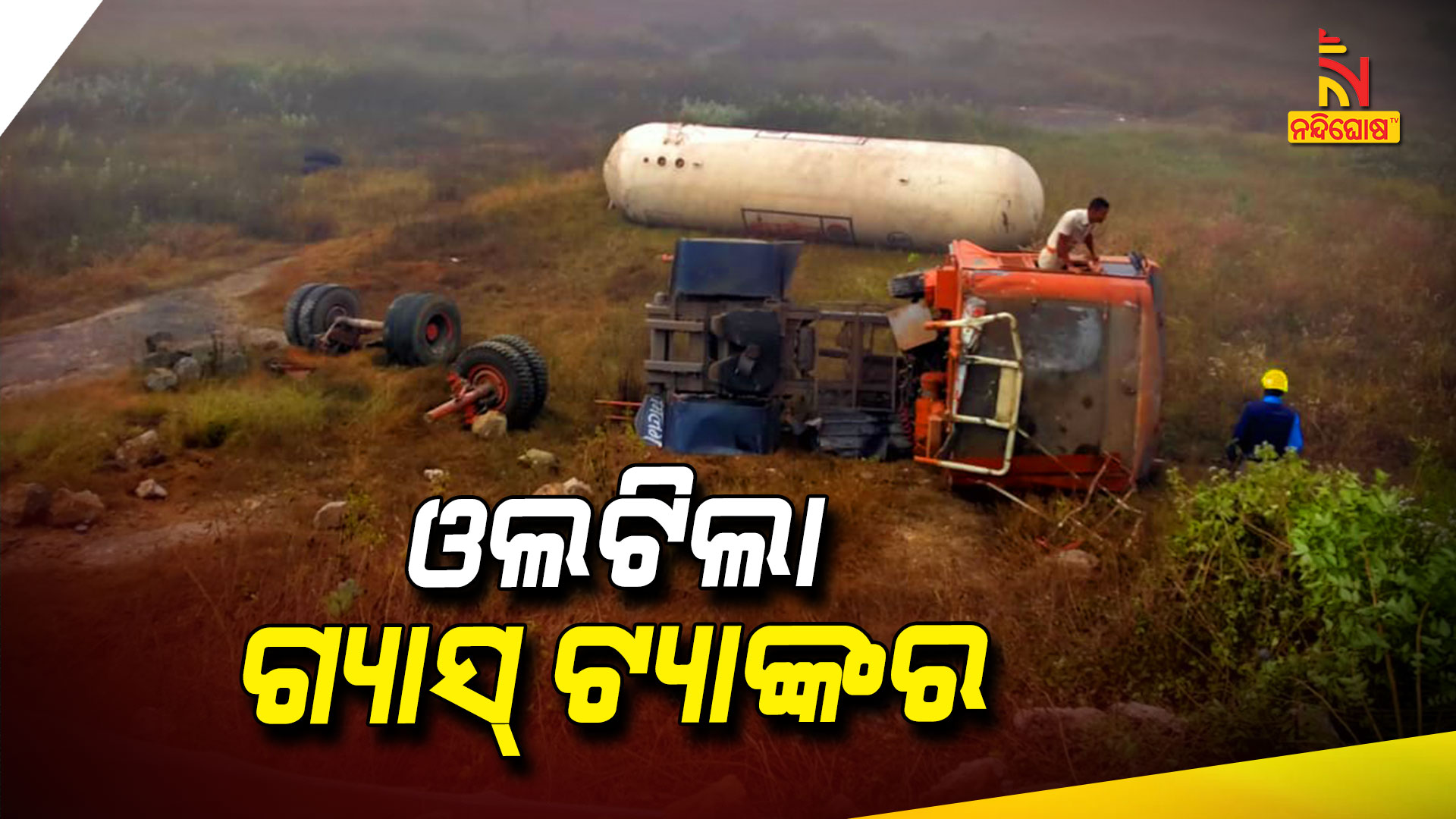 ନବରଙ୍ଗପୁର: ୨୬ ନମ୍ବର ଜାତୀୟ ରାଜପଥ ପଡାଲଗୁଡା ଛକ ନିକଟରେ ଗ୍ୟାସ ଟ୍ୟାଙ୍ଗର ଦୁର୍ଘଟଣାଗ୍ରସ୍ତ । ରାସ୍ତାକଡକୁ ଓଲଟିଛି ଗ୍ୟାସ ଟ୍ୟାଙ୍କର ।