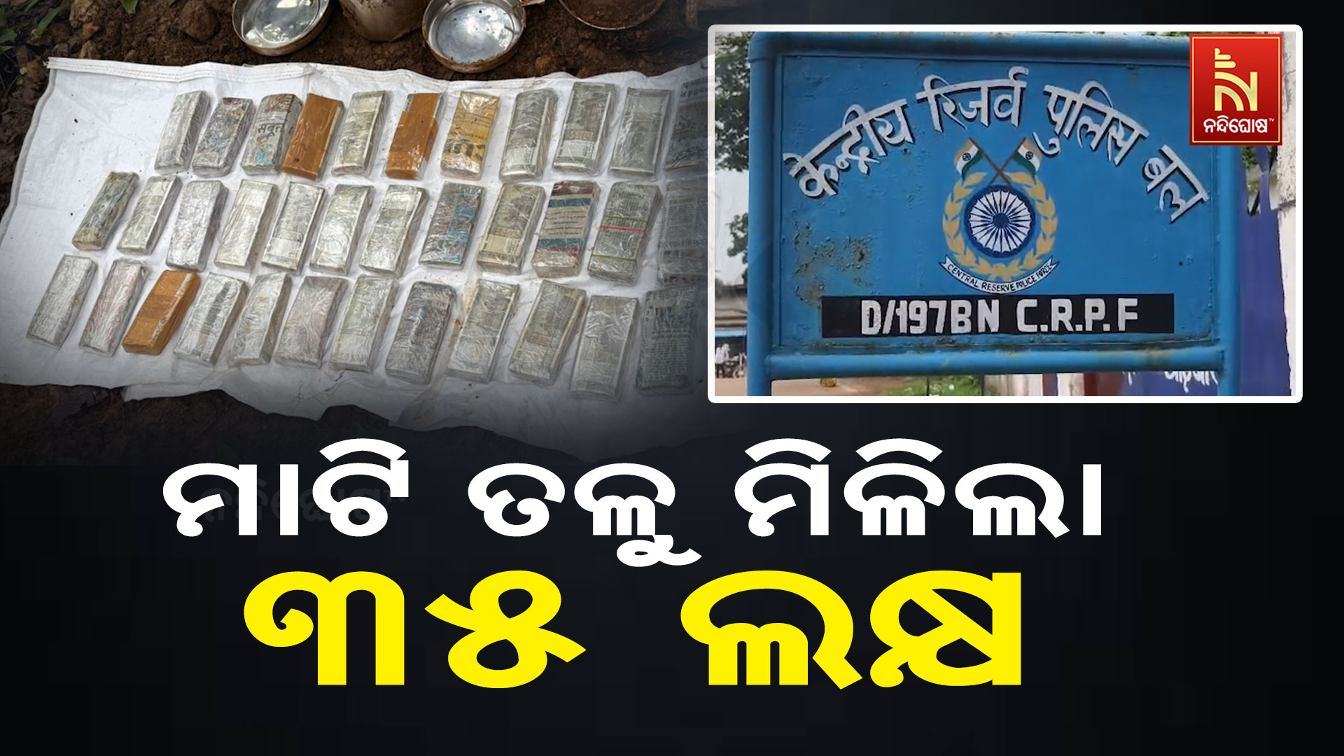 ନନ୍ଦିଘୋଷ ବ୍ୟୁରୋ: ମାଟି ତଳେ ଟଙ୍କା ଲୁଚାଇ ରଖିଥିଲେ ନକ୍ସଲ। ହଜାର କିମ୍ଵା ଏକ ଲକ୍ଷ ନୁହେଁ। ପୁରା ୩୫ ଲକ୍ଷ ଟଙ୍କା। ସୁନ୍ଦରଗଡ଼ – ଝାଡ଼ଖଣ୍ଡ ସୀମା ଚାଇଁବସାର ସରଣ୍ଡା ଜଙ୍ଗଲରେ ଏହି ଟଙ୍କା ସେମାନେ ଲୁଚାଇ ରଖିଥିଲେ। ସନ୍ଦେହ କରାଯାଉଛି କୌଣସି ବଡ଼ ଅଘଟଣ ଘଟାଇବାକୁ ସେମାନେ ଏହି ଟଙ୍କା ଯୋଗାଡ଼ କରି ଲୁଚାଇ ରଖିଥିଲେ। ଜଙ୍ଗଲରେ ସୁରକ୍ଷା କର୍ମୀ ଚଢାଉ କରି ଏହି ଟଙ୍କା ଜବତ କରିଛନ୍ତି।
