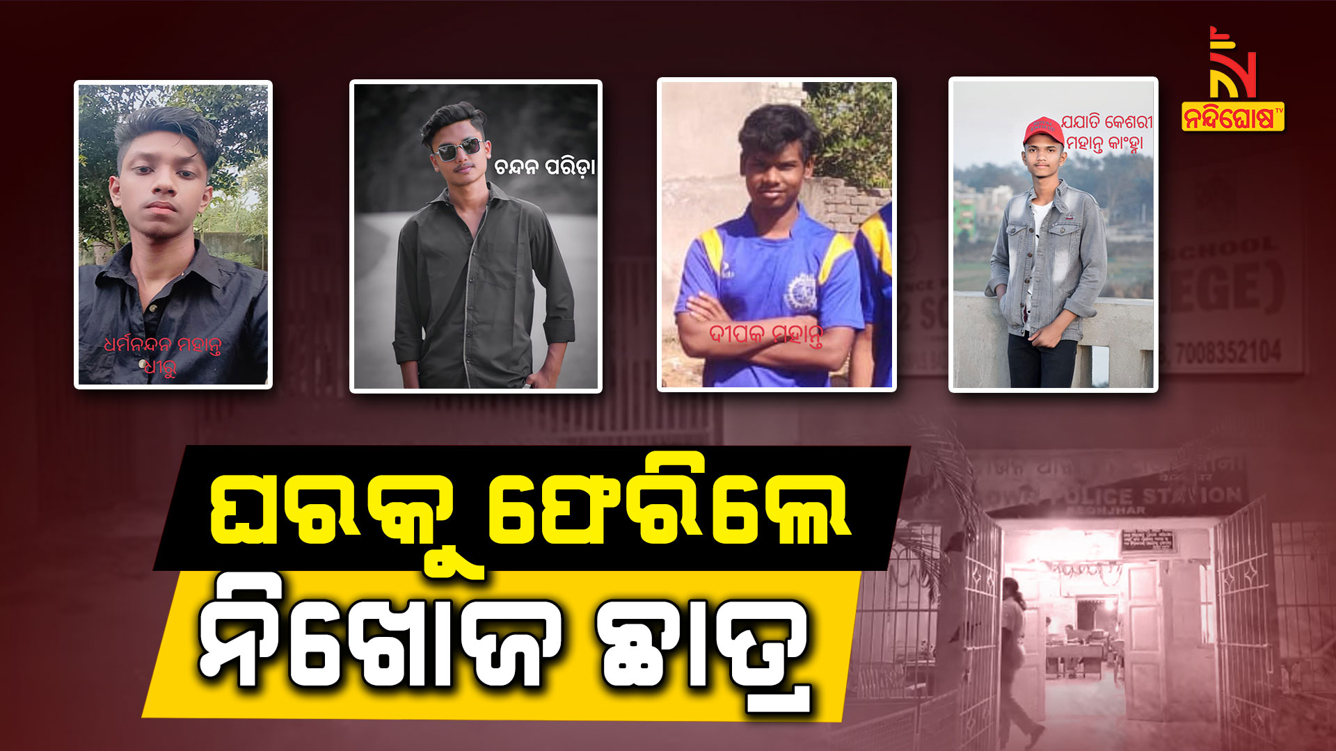 କେନ୍ଦୁଝର: ଘରକୁ ଫେରିଲେ ୪ ଜଣ ନିଖୋଜ ଛାତ୍ର । କେନ୍ଦୁଝରର KSE ଘରୋଇ କଲେଜ ହଷ୍ଟେଲରୁ ଗତକାଲି ନିଖୋଜ ହୋଇଯାଇଥିଲେ ୪ ଛାତ୍ର । ନିଖୋଜ ନେଇ ଟାଉନ ଥାନାରେ ଏତଲା ଦେଇଥିଲେ ଅଭିଭାବକ ଓ କଲେଜ କର୍ତ୍ତୃପକ୍ଷ । ଛାତ୍ରଙ୍କ ନିଖୋଜ ପରେ ପରିବାର ଲୋକେ କଲେଜରେ ପହଞ୍ଚି ସିସିଟିଭି ଯାଞ୍ଚ କରିଥିଲେ । ହେଲେ କଲେଜ ସିସିଟିଭି କାମ କରୁ ନଥିବା ଜଣାପଡିଥିଲା । ପରେ ପରିବାର ଲୋକେ ଥାନାରେ ଏତଲା ଦେଇଥିଲେ ।