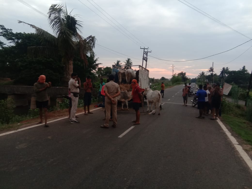 ଭୁବନେଶ୍ୱର: ରାଜଧାନୀ ଉପକଣ୍ଠରେ ଗୋରୁ ଚୋରାଚାଲାଣ ହେଉଥିବା ବେଳେ ଅଟକାଇଲେ ଗ୍ରାମବାସୀ । ଘଟଣା ସ୍ଥଳରେ ବଜରଙ୍ଗ ଦଳର କର୍ମୀ ମାନେ ପହଁଞ୍ଚି ପିକ୍ ଅପ୍ ଭ୍ୟାନ୍ ରୁ ୫ଟି ଗୋରୁଙ୍କୁ ଉଦ୍ଧାର କରିଛନ୍ତି।