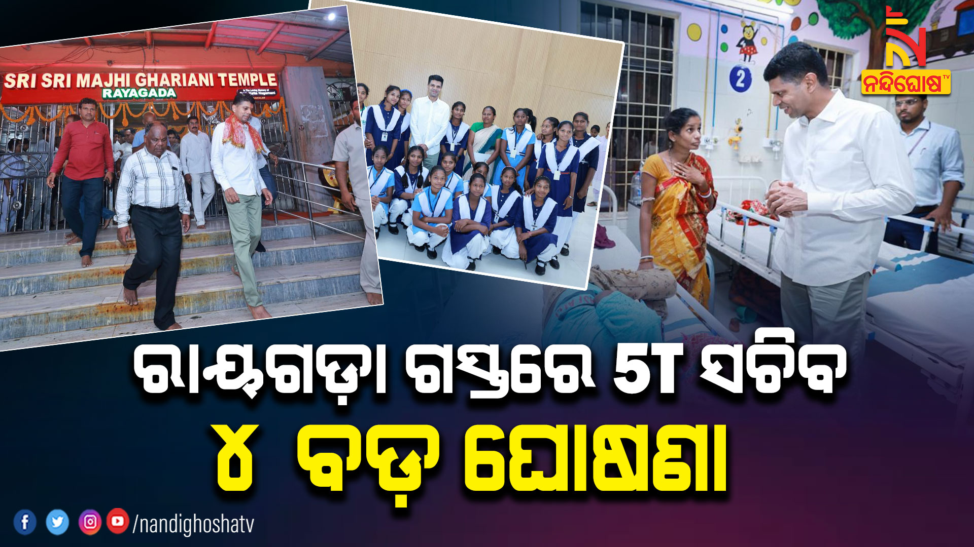 5T ଉପକ୍ରମରେ ୬ ମାସ ମଧ୍ୟରେ ଜିଲ୍ଲାର ସବୁ ସ୍କୁଲ ଓ କଲେଜର ଉନ୍ନତୀକରଣ ହେବ । ସ୍କୁଲ ଓ କଲେଜ ଉନ୍ନତିକରଣ ପାଇଁ ୧୪.୫୦ କୋଟି ଟଙ୍କା ମଞ୍ଜୁର ହୋଇଛି ବୋଲି କହିଛନ୍ତି । ମା ମଝିଘରିଆଣୀ ମନ୍ଦିର ପାଇଁ ରେଳବାଇ ସହିତ ଜମି ପ୍ରିମିୟମ ଛାଡ଼କୁ ଖୁବଶୀଘ୍ର ଅନୁମୋଦନ କରାଯିବ ବୋଲି ସେ କହିଛନ୍ତି । ରାୟଗଡ଼ାଠାରେ ମା ମଝିଘରିଆଣୀ ମନ୍ଦିରର ସୌନ୍ଦର୍ଯକରଣ ପାଇଁ ଡିପିଆର୍ ଏକ ମାସ ମଧ୍ୟରେ ଦାଖଲ ଏବଂ ୬ ମାସ ମଧ୍ୟରେ ମନ୍ଦିର କାମ ନିର୍ମାଣ ହେବ ବୋଲି 5T ସଚିବ ଘୋଷଣା କରିଛନ୍ତି । ଏହା ବ୍ୟତୀତ ମୁଖ୍ୟ ଚିକିତ୍ସାଳୟ ପରିଦର୍ଶନ କରି ରୋଗୀ ଓ ଡାକ୍ତରଙ୍କ ସହ ଆଲୋଚନା କରିଛନ୍ତି ।