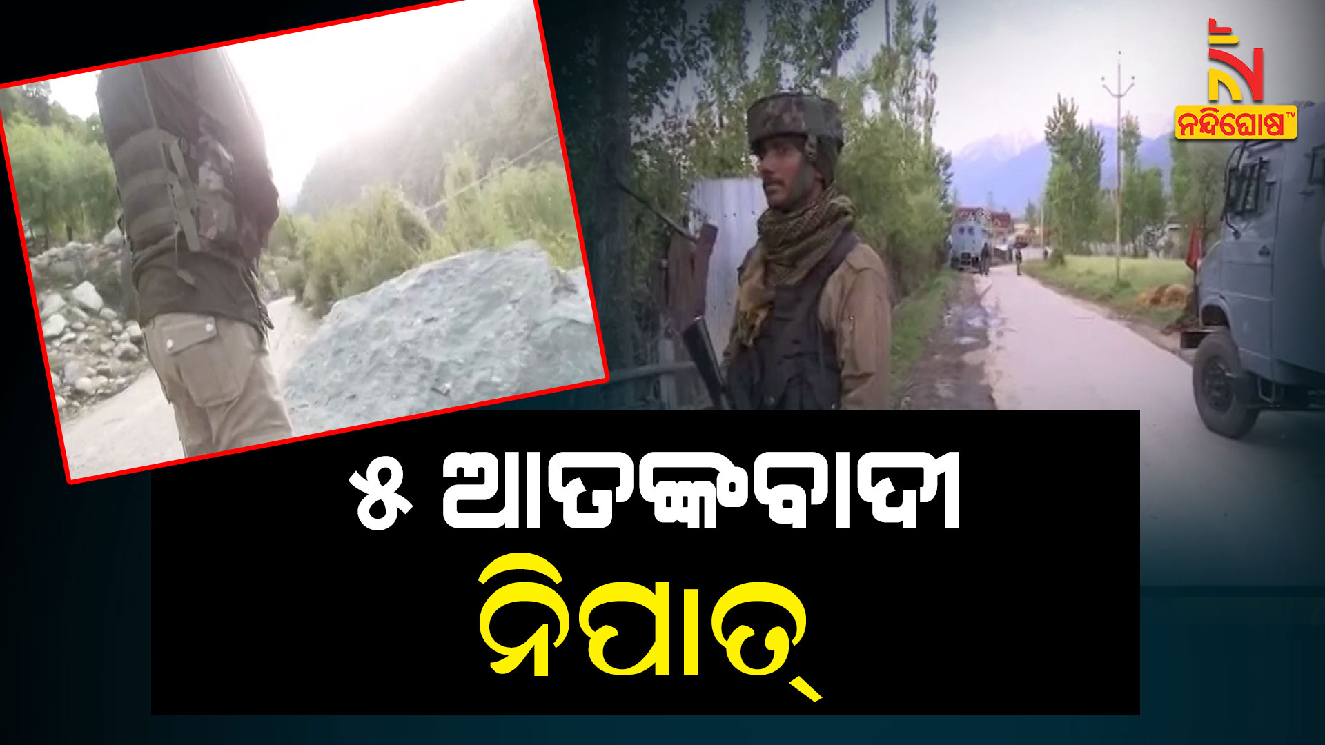 ଶ୍ରୀନଗର : ଜାମ୍ମୁ-କାଶ୍ମୀର କୁପଓ୍ବାରାରେ ୫ ଆତଙ୍କବାଦୀ ନିହତ । LOC ନିକଟରେ ସେନା-ଆତଙ୍କୀଙ୍କ ମଧ୍ୟରେ ଗୁଳି ବିନିମୟରେ ୫ ଆତଙ୍କବାଦୀଙ୍କ ମୃତ୍ୟୁ ହୋଇଛି । ସେନା ଓ ପୋଲିସ ପକ୍ଷରୁ ଜଏଣ୍ଟ ସର୍ଚ୍ଚ ଅପରେସନ ଚାଲିଥିବା ବେଳେ କୁପଓ୍ବାଡା ନିକଟରେ ଆତଙ୍କବାଦୀ ଗୁଳି ଚଳାଇଥିଲେ ।