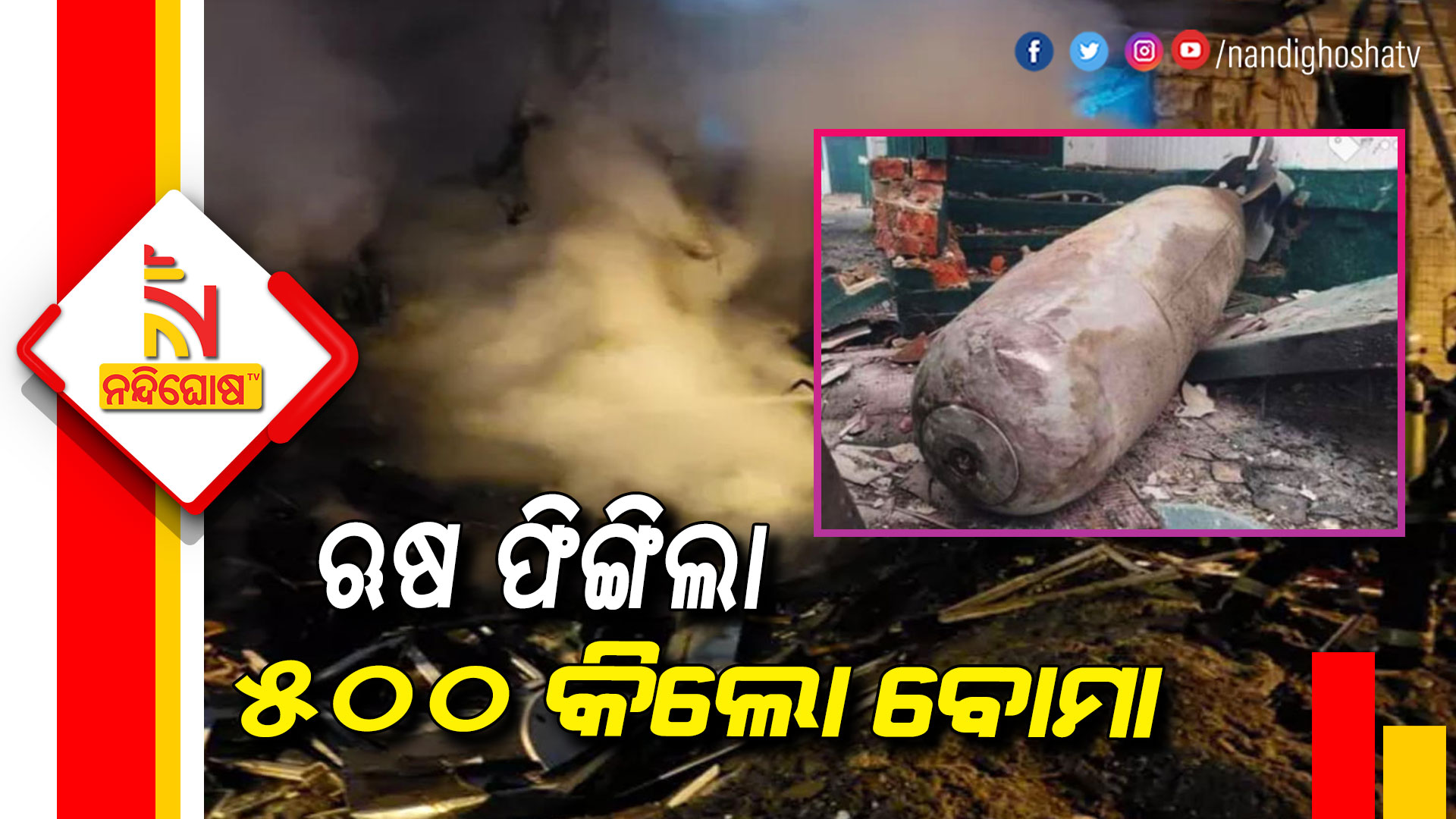 କେବଳ କିଭ୍ ନୁହେଁ ୟୁକ୍ରେନର ଅନ୍ୟ ସହର ଉପରେ ମଧ୍ୟ ଋଷର ଆକ୍ରମଣ ଜାରି ରହିଛି । ଆକାଶରୁ ମିଜାଇଲ ସହ ବର୍ଷୁଛି ବୋମା । ଏମିତି ଏକ ବୋମା ୟୁକ୍ରେନର ଅନ୍ୟତମ ସହର ଚେରନିହିବରେ ଜଣେ ବ୍ୟକ୍ତଙ୍କ ଘରେ ପଡିଛି । ଋଷ ଫିଙ୍ଗିଥିବା ଏହି ବୋମାଟିର ଓଜନ ୫୦୦ କେଜି । ହେଲେ ବୋମାଟି ଫାଟିନି । ଏନେଇ ୟୁକ୍ରେନ ବିଦେଶ ମନ୍ତ୍ରୀ ଦିମିତ୍ରୋ କଲଓ୍ବା ଟ୍ବିଟ୍ କରି ଏ ସମ୍ପର୍କରେ ଜଣାଇଛନ୍ତି ।