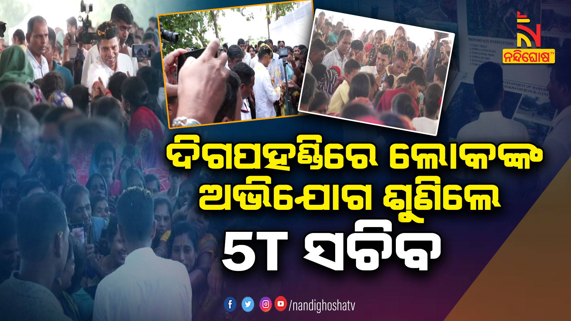ଦିଗପହଣ୍ଡି: ଦିଗପହଣ୍ଡିରେ ଜନଅଭିଯୋଗ ଶୁଣାଣି କାର୍ଯ୍ୟକ୍ରମରେ ଯୋଗଦେଇଛନ୍ତି 5T ସଚିବ ଭିକେ ପାଣ୍ଡିଆନ । ଲୋକଙ୍କଠାରୁ ଅଭିଯୋଗ ଗ୍ରହଣ କରି ସମସ୍ୟାର ସମାଧାନ ପାଇଁ ପ୍ରତିଶ୍ରୁତି ଦେଇଛନ୍ତି 5T ସଚିବ । ସପ୍ତାହକରେ ମନ୍ଦିର, ଚର୍ଚ୍ଚ, ମସଜିଦ, କମ୍ୟୁନିଟି ସେଣ୍ଟର ସମ୍ପର୍କିତ ଅଭିଯୋଗର ବିଚାର କରାଯାଇ ମୁଖ୍ୟମନ୍ତ୍ରୀ ଖୁସି ଖବର ଦେବେ ବୋଲି 5T ସଚିବ ପ୍ରତିଶ୍ରୁତି ଦେଇଛନ୍ତି । ମୁଖ୍ୟମନ୍ତ୍ରୀ ଦେଉଥିବା ଅନୁଦାନକୁ ସ୍ବଚ୍ଛତାର ସହିତ ଉପଯୋଗ କରିବାକୁ ଆହ୍ବାନ ଦେଇଛନ୍ତି 5T ସଚିବ । ଆସନ୍ତା ୨ଦିନ ମଧ୍ୟରେ ପିଇବା ପାଣି ସମସ୍ୟାର ସମାଧାନ କରାଯିବ । ଲୋକଙ୍କ ଅଭିଯୋଗ ଅନୁସାରେ ସନ୍ଧ୍ୟା ସୁଦ୍ଧା ଗାଁର ଇଞ୍ଜିନିୟର ପହଞ୍ଚି ଅନୁଧ୍ୟାନ କରିବେ । ପାନୀୟ ଜଳ ପ୍ରକଳ୍ପ ପାଇଁ ଦିଗପହଣ୍ଡି ବ୍ଲକରେ ୧୭୦ କୋଟି ଟଙ୍କା ଖର୍ଚ୍ଚ ହେଉଥିବାବେଳେ ଜମିକୁ ଜଳସେଚନ ପାଇଁ ୫୦ କୋଟି ଟଙ୍କାରେ ଇନଷ୍ଟ୍ରିମ ଷ୍ଟୋରେଜ ନିର୍ମାଣ ଚାଲିଛି । ମିଶନ ଶକ୍ତି ମାଆ ଓ ଚାଷୀଙ୍କ ପାଇଁ ରାଜ୍ୟ ସରକାର ଅନେକ ଯୋଜନା ପ୍ରଣୟନ କରିଛନ୍ତି । ବିଜୁ ସ୍ବାସ୍ଥ୍ୟ କଲ୍ୟାଣ ଯୋଜନାରେ ଗରିବ କିଭଳି ମାଗଣାରେ ଚିକିତ୍ସିତ ହେଉଛନ୍ତି ସେନେଇ ଲୋକଙ୍କ ଅବଗତ କରିଥିଲେ ଫାଇଭ-ଟି ସଚିବ ।