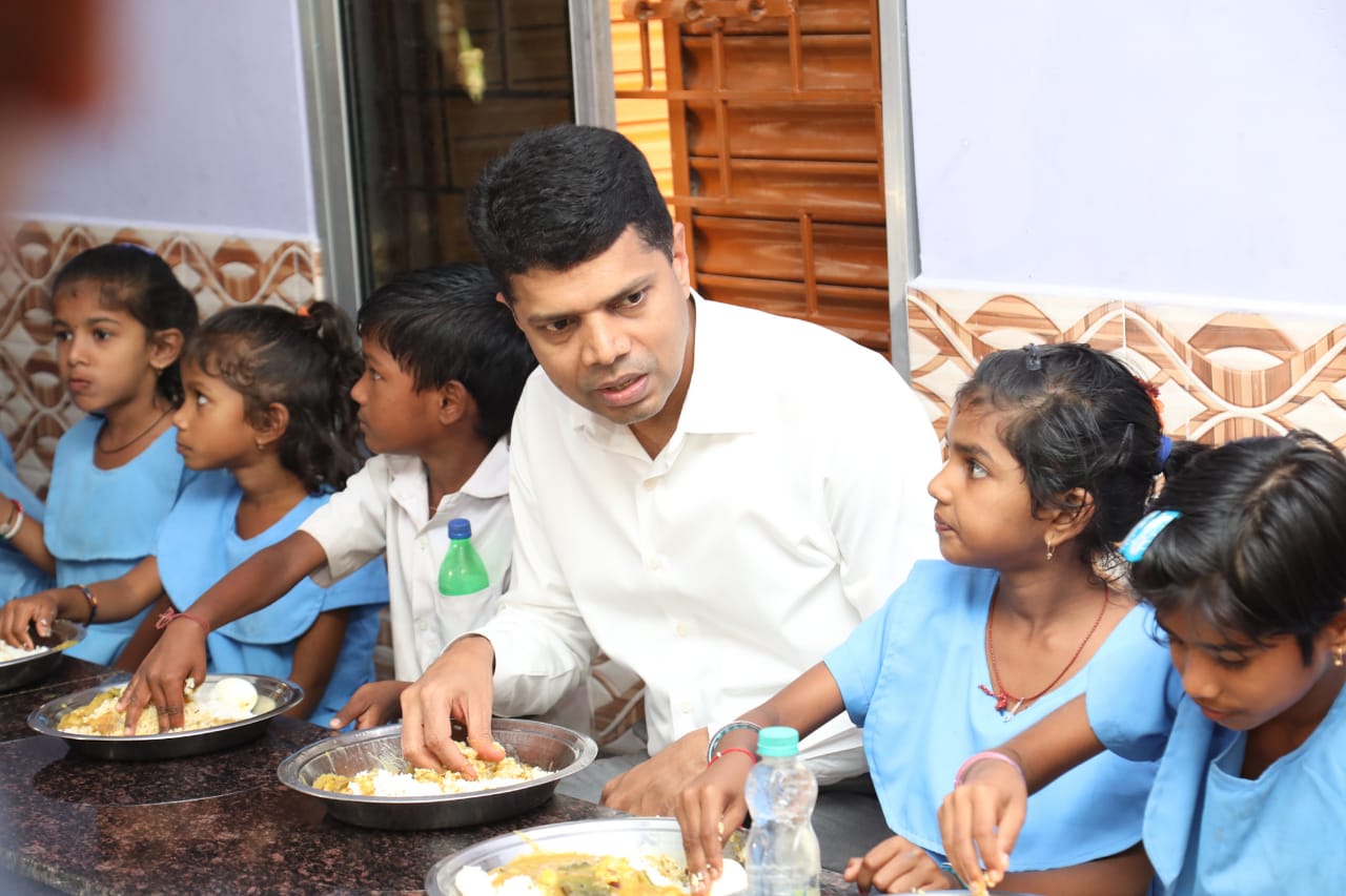 ସ୍କୁଲରେ ପିଲାଙ୍କ ସହ ମଧ୍ୟାହ୍ନ ଭୋଜନ ମଧ୍ୟ କରିଥିଲେ ଭି. କାର୍ତ୍ତିକେୟନ ପାଣ୍ଡିଆନ ।