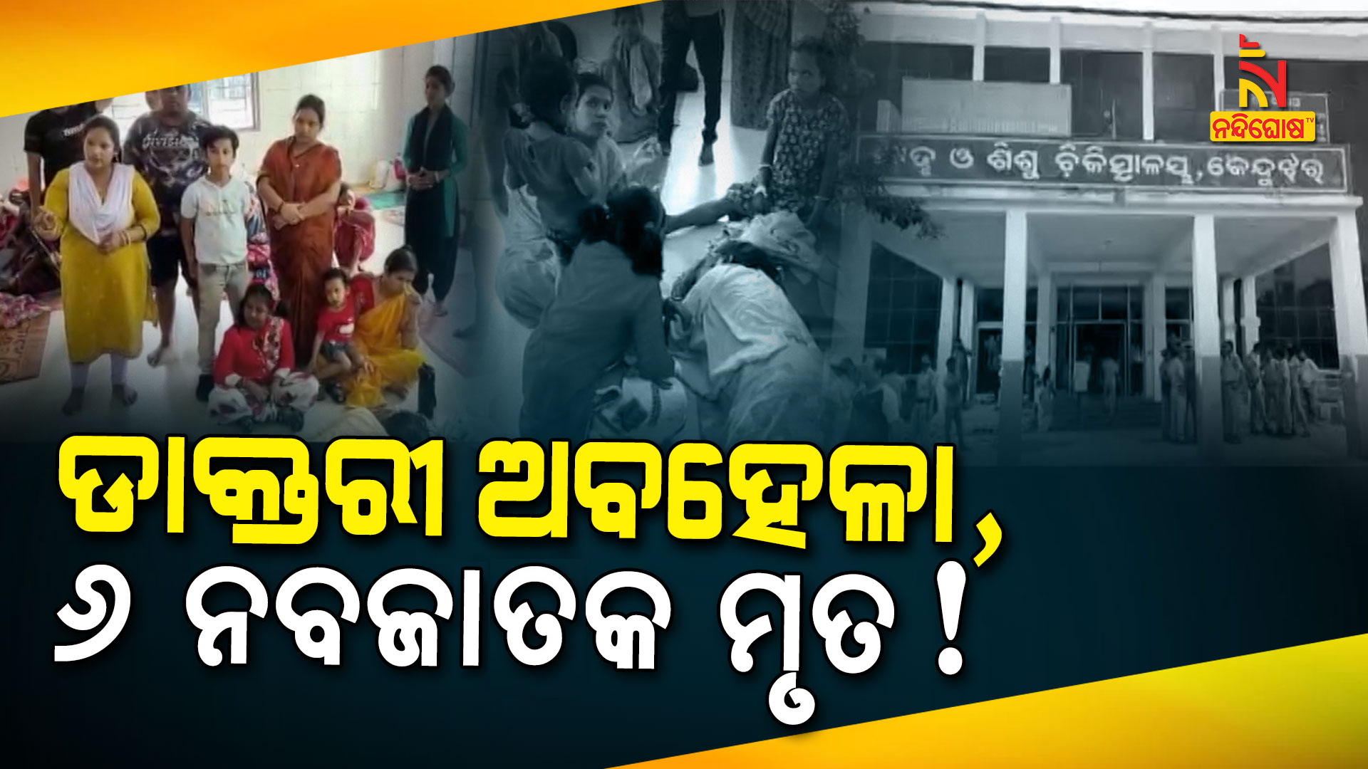 କେନ୍ଦୁଝର: କେନ୍ଦୁଝର ଜିଲ୍ଲା ମୁଖ୍ୟ ଚିକିତ୍ସାଳୟର ଶିଶୁ ବିଭାଗରେ ଅଭାବନୀୟ ଘଟଣା । ଡାକ୍ତରଙ୍କ ଅବହେଳା ଯୋଗୁ ୬ ନବଜାତ ଶିଶୁଙ୍କ ମୃତ୍ୟୁ ଅଭିଯୋଗ । ଅଭିଯୋଗ ଅନୁସାରେ ଗତକାଲି ରାତି ୯ଟାରୁ ଆଜି ଦିନ ୧୨ଟା ଯାଏ କୌଣସି ଡାକ୍ତର ନବଜାତ ଶିଶୁଙ୍କ ସ୍ୱାସ୍ଥ୍ୟାବସ୍ଥା ଦେଖିବା ପାଇଁ ଆଇସିୟୁକୁ ଯାଇ ନଥିଲେ । ଡାକ୍ତର ନଆସିବାରୁ ଶିଶୁମାନଙ୍କୁ ଠିକ୍ ଚିକିତ୍ସା ମିଳିପାରିନଥିଲା । ଯେଉଁଥିପାଇଁ ୬ ଜଣ ନବଜାତ ଶିଶୁଙ୍କ ମୃତ୍ୟୁ ହୋଇଥିବା ପରିବାର ଲୋକ ଅଭିଯୋଗ କରିଛନ୍ତି ।
