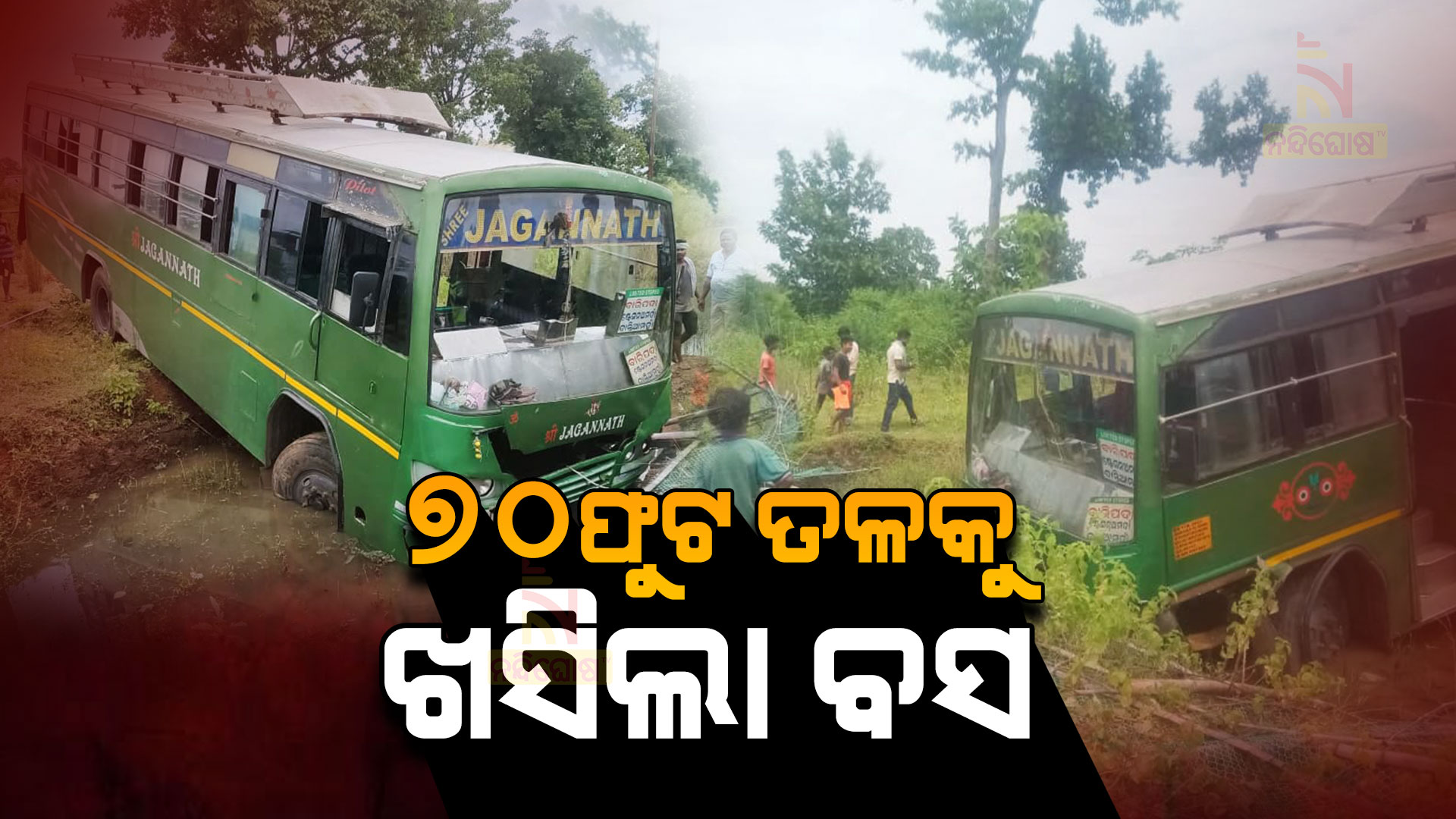 ମୟୂରଭଞ୍ଜ : ବାରିପଦା ବେତନଟୀ ଥାନା କୃଷ୍ଣଚନ୍ଦ୍ରପୁର ଫାଣ୍ଡି ଅଧୀନ ରାଗ୍ଧା କଲେଜ ଛକ ଅନତି ଦୂରରେ ଏକ ଘରୋଇ ଯାତ୍ରୀବାହୀ ବସ ବୁଧବାର ମଧ୍ୟାହ୍ନରେ ଭାରସାମ୍ୟ ହରାଇ ଦୁର୍ଘଟଣାଗ୍ରସ୍ତ ହୋଇଥିବା ବେଳେ 6ରୁ ୭ଜଣ ଯାତ୍ରୀ ଆହତ ହୋଇଛନ୍ତି l ସୂଚନା ମୁତାବକ ଓଆର-୧୧କେ- ୩୪୫୧ନମ୍ବର ବିଶିଷ୍ଟ ଶ୍ରୀଜଗନ୍ନାଥ ନାମକ ଏକ ଘରୋଇ ବସ ରାସଗୋବିନ୍ଦପୁର ଷ୍ଟେସନ ଅମର୍ଦାରୁ ଦାନ୍ତିଆମୁହାଁ ହୋଇ ବାରିପଦା ଯାଉଥିଲା l ତେବେ ରାଗ୍ଧା କଲେଜଛକରୁ ବସ ଛାଡିବାର ଅନତି ଦୂରରେ କୌଣସି କାରଣରୁ ବସ ଉପରୁ ଚାଳକ ନିୟନ୍ତ୍ରଣ ହରାଇ ବସିବାରୁ ଭାରସାମ୍ୟ ହରାଇ ବସଟି ୧୮ନଂ ଜାତୀୟରାଜପଥରୁ ପ୍ରାୟ ୭୦ଫୁଟ ତଳକୁ ଖସି ଏକ ପାଣି ନାଳ ଭିତରେ ପଶି ଅଟକି ଯାଇଥିଲା l ଦୁର୍ଘଟଣା ୬ରୁ ୭ଜଣ ଯାତ୍ରୀ ଆହତ ହୋଇଥିବା ବେଳେ ପାରିଆକୁଲି ଗ୍ରାମର ଠାକୁରାମ ଟୁଡୁଙ୍କ ପୁଅ ପିତାମ୍ବର ଟୁଡୁଙ୍କ ଛାତିରେ ଜୋର ଆଘାତ ଲାଗିଥିବାରୁ ସେ ଗୁରୁତର ଥିବା ଜଣାଯାଇଛି l