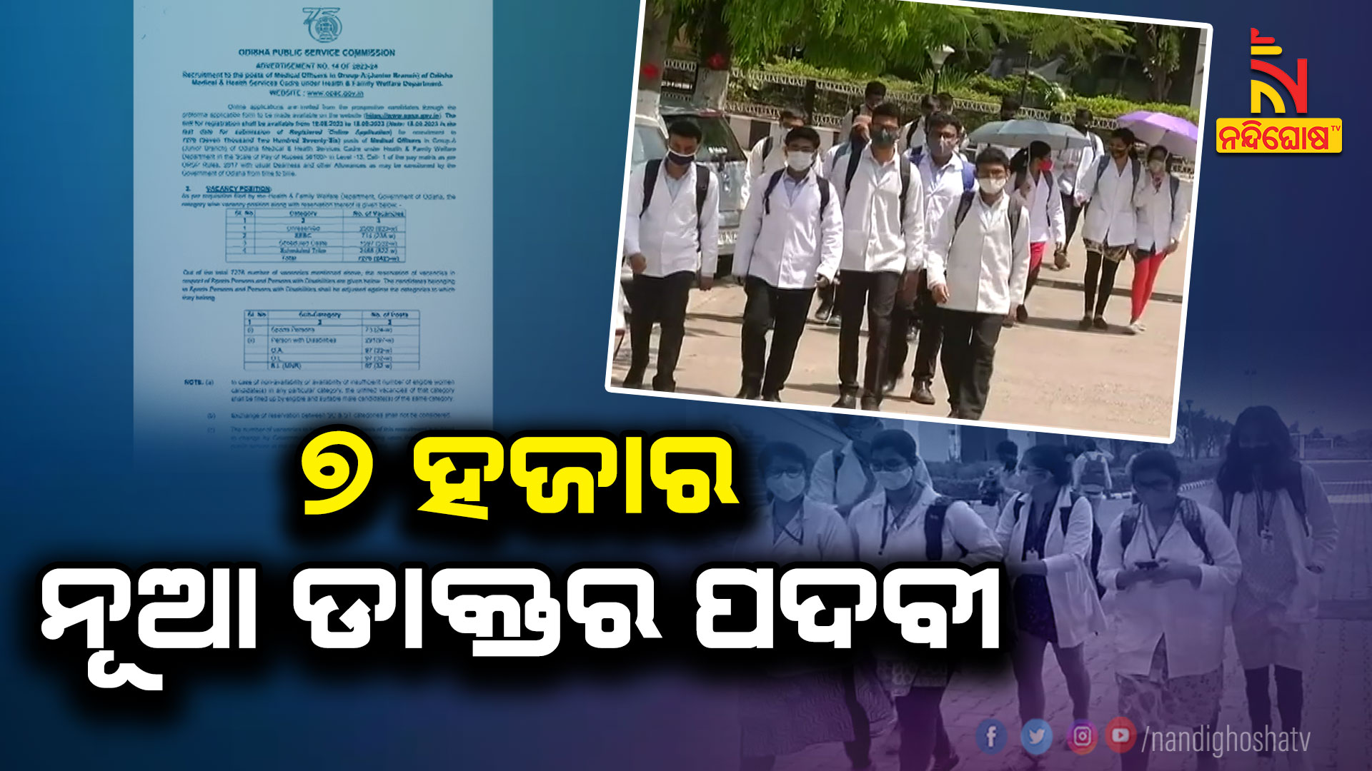 ଭୁବନେଶ୍ବର: ରାଜ୍ୟରେ ଖାଲି ପଡିଥିବା ଡାକ୍ତର ପଦ ପୂରଣ ପାଇଁ ପ୍ରକ୍ରିୟା ଆରମ୍ଭ ହୋଇଛି । OPSC ପକ୍ଷରୁ ଆରମ୍ଭ ହେଲା ପ୍ରକ୍ରିୟା । ୭ ହଜାର ୨୭୬ ଡାକ୍ତର ପଦବୀ ପୂରଣ ପାଇଁ ବିଜ୍ଞାପନ ଜାରି ହୋଇଛି ।