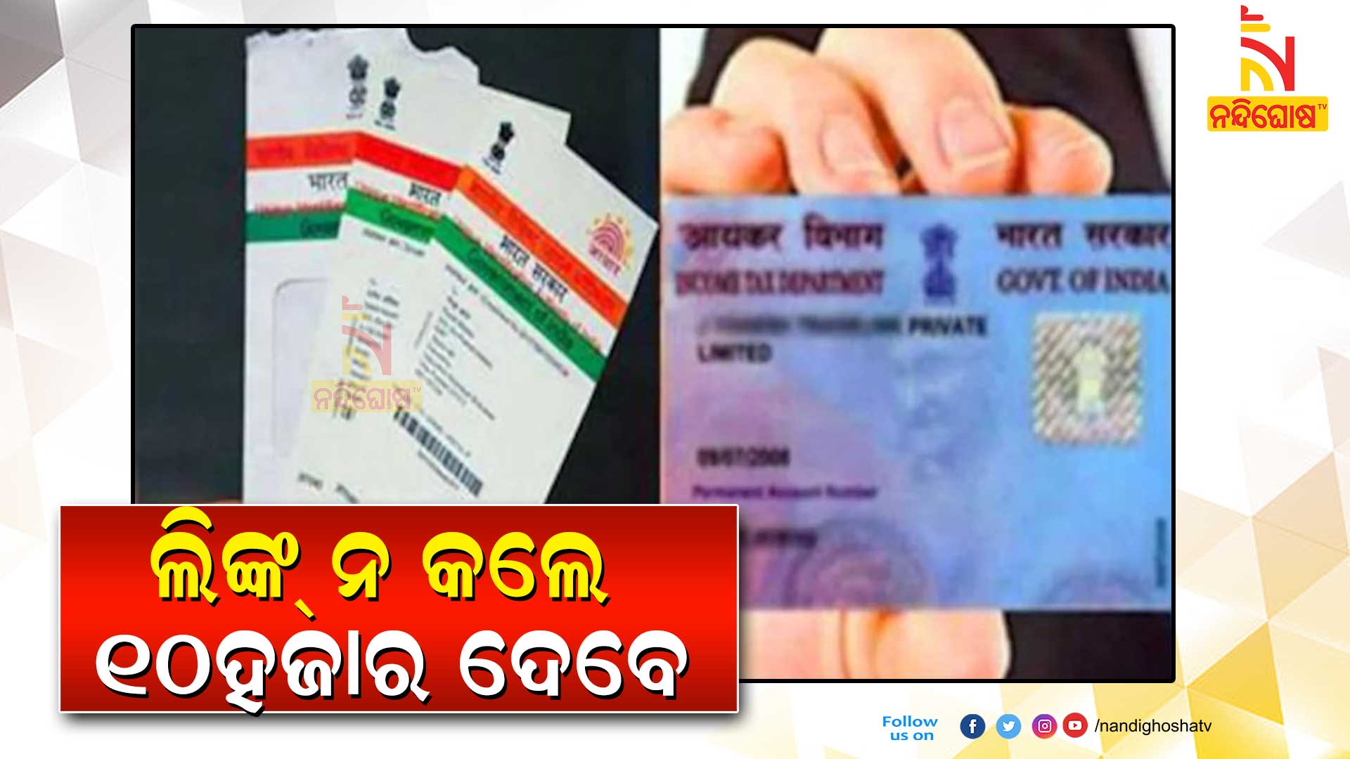 ଯଦି ଆପଣ ଏହା ନ କରିଛନ୍ତି ତେବେ ୧୦ ହଜାର ଟଙ୍କାର ଜୋରିମାନା ଦେବାକୁ ପଡିବ । ଏ ନେଇ ସରକାରଙ୍କ ପକ୍ଷରୁ କଡା ନିର୍ଦ୍ଦେଶ ଦିଆଯାଇଛି । ୨୦୨୧ ମାର୍ଚ୍ଚ ୩୧ ତାରିଖ ପର୍ଯ୍ୟନ୍ତ ଯଦି କେହି ଆଧାର କାର୍ଡରେ ପାନ୍ କାର୍ଡ ଲିଙ୍କ କରି ନାହାଁନ୍ତି, ତେବେ ଇନକମ ଟ୍ୟାକ୍ସ ଆକ୍ଟ ଆଧାରରେ ଜୋରିମାନା ଦେବାକୁ ପଡିବ । ଏଥିସହ ପାନ୍ କାର୍ଡ ରଦ୍ଦ ହୋଇଯିବାର ସମ୍ଭାବନା ରହିଛି । ପାନ୍ କାର୍ଡ ଅକାମି ହୋଇଗଲେ ସମସ୍ୟାରେ ପଡିବେ ଗ୍ରାହକ । ଆଧାର କାର୍ଡରେ ପାନ କାର୍ଡ ଲିଙ୍କ କରିବାକୁ ହେଲେ ଇନକମ ଟ୍ୟାକସର ଅଫିସିଆଲ ସାଇଟରେ ଏହା କରିବାକୁ ପଡିବ ।