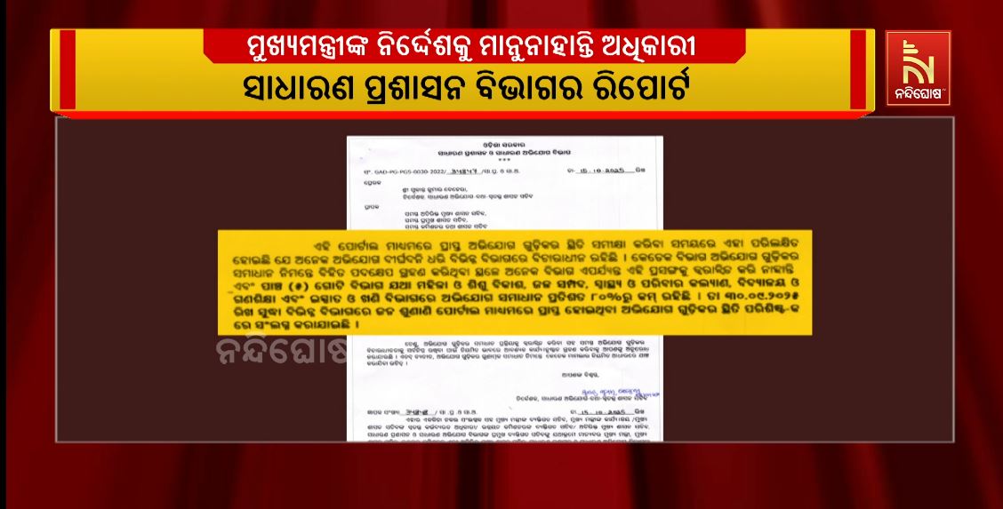 ନନ୍ଦିଘୋଷ ବ୍ୟୁରୋ : ମୁଖ୍ୟମନ୍ତ୍ରୀଙ୍କ ନିର୍ଦ୍ଦେଶକୁ ମାନୁନାହାନ୍ତି ଅଧିକାରୀ । ଜନଶୁଣାଣିକୁ ଗୁରୁତ୍ବ ଦେଉନାହାନ୍ତି ୬ ବିଭାଗ । ୬ଟି ବିଭାଗ ଲୋକଙ୍କ ଅଭିଯୋଗର ସମାଧାନ ଦିଗରେ ଗୁରୁତ୍ବ ଦେଉ ନାହାନ୍ତି । ଯେଉଁଥିପାଇଁ ପ୍ରାୟ ୩୮ହଜାର ଲୋକଙ୍କ ଅଭିଯୋଗର ସମାଧାନ ହୋଇପାରୁନାହିଁ । ଏନେଇ ସରକାରଙ୍କ ପକ୍ଷରୁ ବାରମ୍ବାର ଚିଠି ଲେଖାଗଲେ ମଧ୍ଯ କର୍ଣ୍ଣପାତ କରୁ ନଥିବାରୁ ଗତ ୧୫ ତାରିଖରେ ସମ୍ପୃକ୍ତ ବିଭାଗୀୟ ମୁଖ୍ୟଙ୍କୁ ପୁଣି ଥରେ ଚିଠି ଲେଖି ତାଗିଦ କରାଯାଇଛି । ସାଧାରଣ ପ୍ରଶାସନ ବିଭାଗ ଏହି ରିପୋର୍ଟ ସାର୍ବାଜନୀନ ହେବା ପରେ ସତ୍ଯ ପଦାକୁ ଆସିଛି । ଜଳସମ୍ପଦ, ମହିଳା ଓ ଶିଶୁ ବିକାଶ, ସ୍ବାସ୍ଥ୍ୟ ଓ ପରିବାର କଲ୍ୟାଣ, ପଞ୍ଚାୟତିରାଜ, ଇସ୍ପାତ ଓ ଖଣି ଏବଂ ବିଦ୍ୟାଳୟ ଏବଂ ଗଣଶିକ୍ଷା ବିଭାଗରେ ଅଭିଯୋଗ ସମାଧାନ ହାର ଅନ୍ୟ ବିଭାଗଠାରୁ ଯଥେଷ୍ଟ କମ୍ ରହିଛି ।