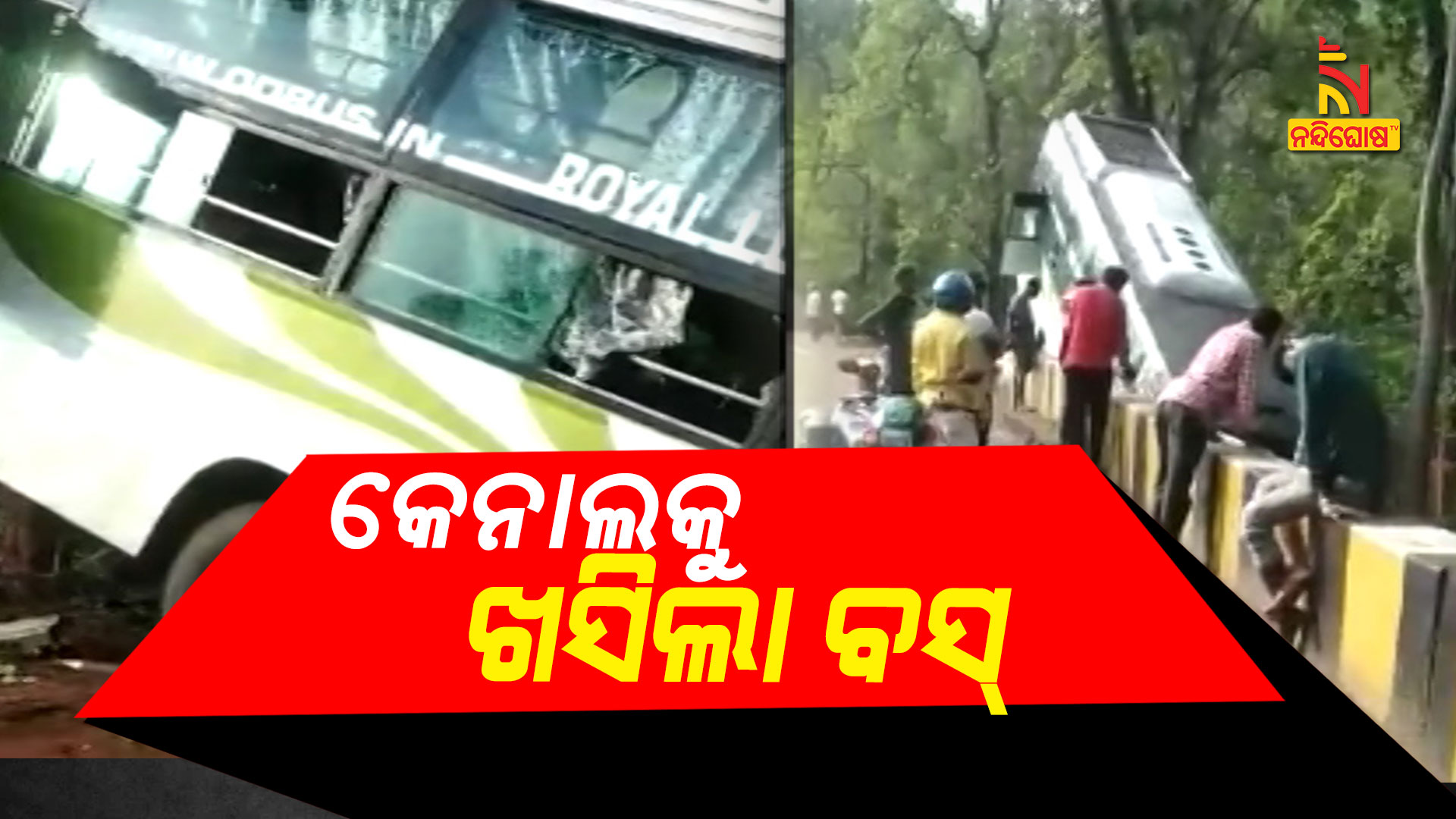 ଭାରସାମ୍ୟ ହରାଇ କେନାଲକୁ ଖସିଲା ଯାତ୍ରୀବାହୀ ବସ୍, ଅଳ୍ପକେ ବର୍ତ୍ତିଲେ ଯାତ୍ରୀ